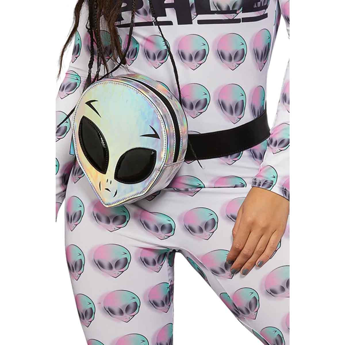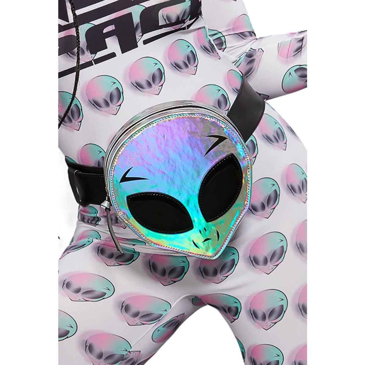 Alien är ett av de hetaste teman som finns under sommaren och med denna holografiska alien-midjeväskan så kan du få med dig alla saker du behöver på festen oavsett outfit du har på dig. Vem behöver fickor när man har den snyggaste alien väskan man kan köpa för pengar.