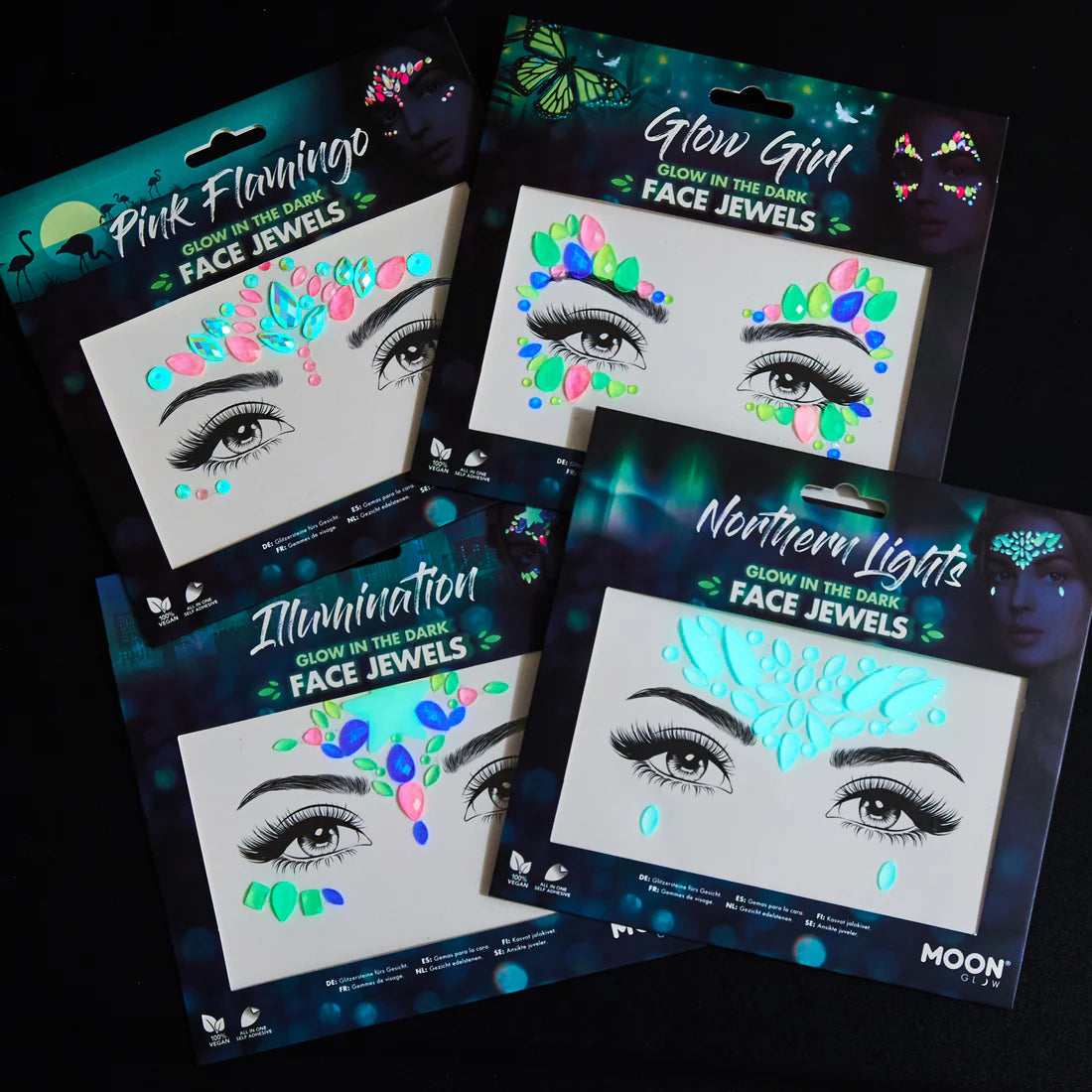 Har du alltid drömt att ha ett eget norrsken i pannan eller vill du bara lysa upp festen med din närvaro? Med Moon Creations glow in the dark Northen lights kroppsstenar får du möjlighet att klä ut dig själv till detta natufenomen.