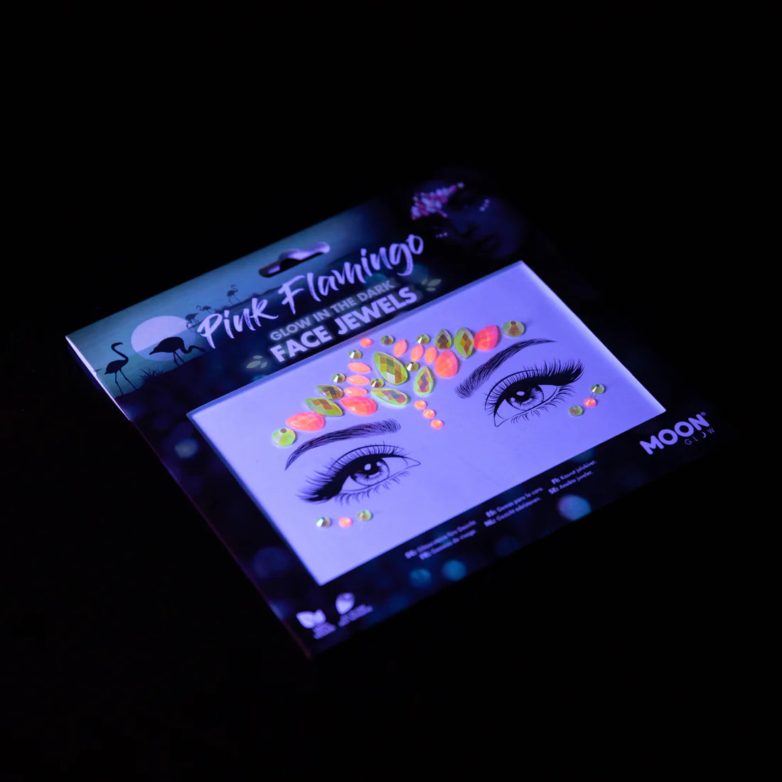 Fånga blicken och stjäl rampljuset med ansiktsjuveler från Moon Creations. Pink Flamingo är glittrande, självlysande ansiktsjuveler är det ultimata tillbehöret för att förvandla din look från alldaglig till extraordinär.