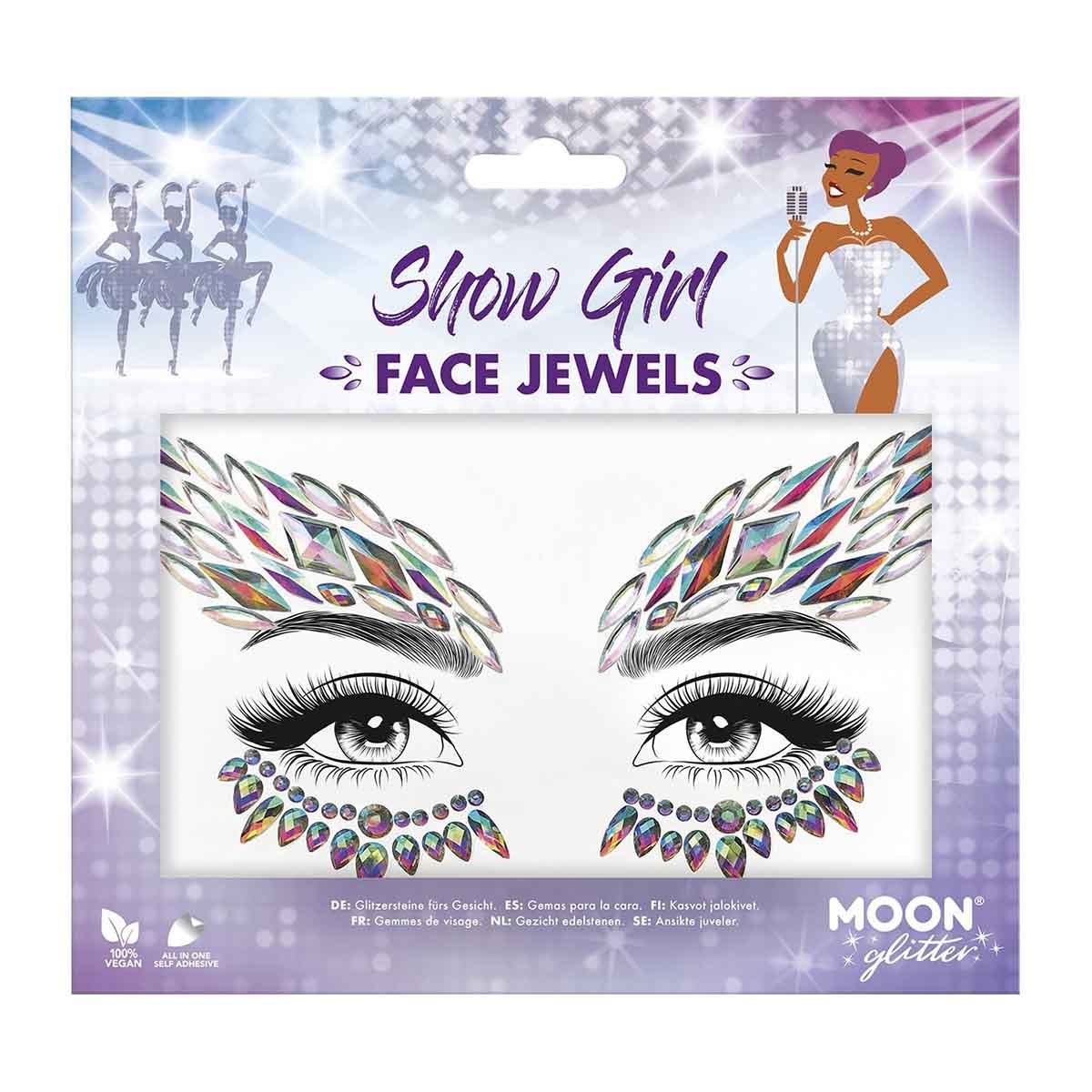 Med Moon Creations ansiktsjuveler i glittrande toner kan du känna dig som en riktig showgirl i Las Vegas. Dessa vackra strass-stenar är redo att fästas direkt på huden, och kommer garanterat att glittra extra mycket på festen eller till vardags.