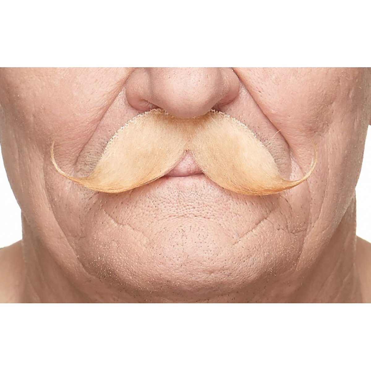 Här har vi en mustasch som verkligen lyser upp ansiktet – bokstavligen. Den blonda färgen ger ett oväntat och lekfullt intryck, samtidigt som den svängda formen håller stilen på topp. Oavsett om du ska på temafest, är värd för en mordgåta eller bara vill glida in med elegans, gör denna ljusa mustasch jobbet.