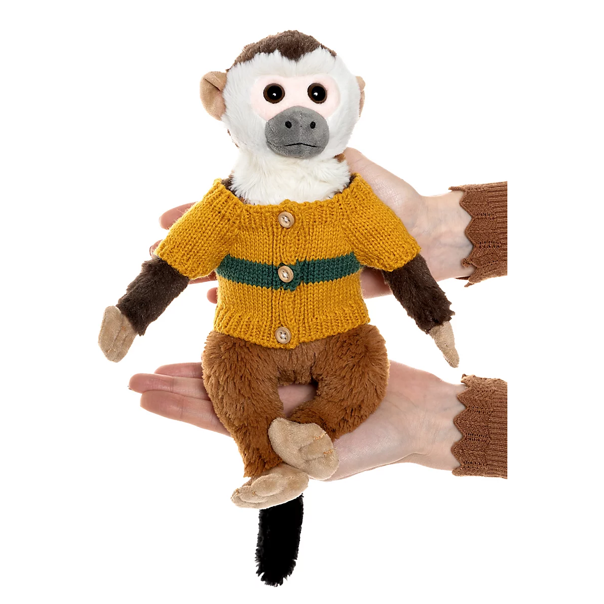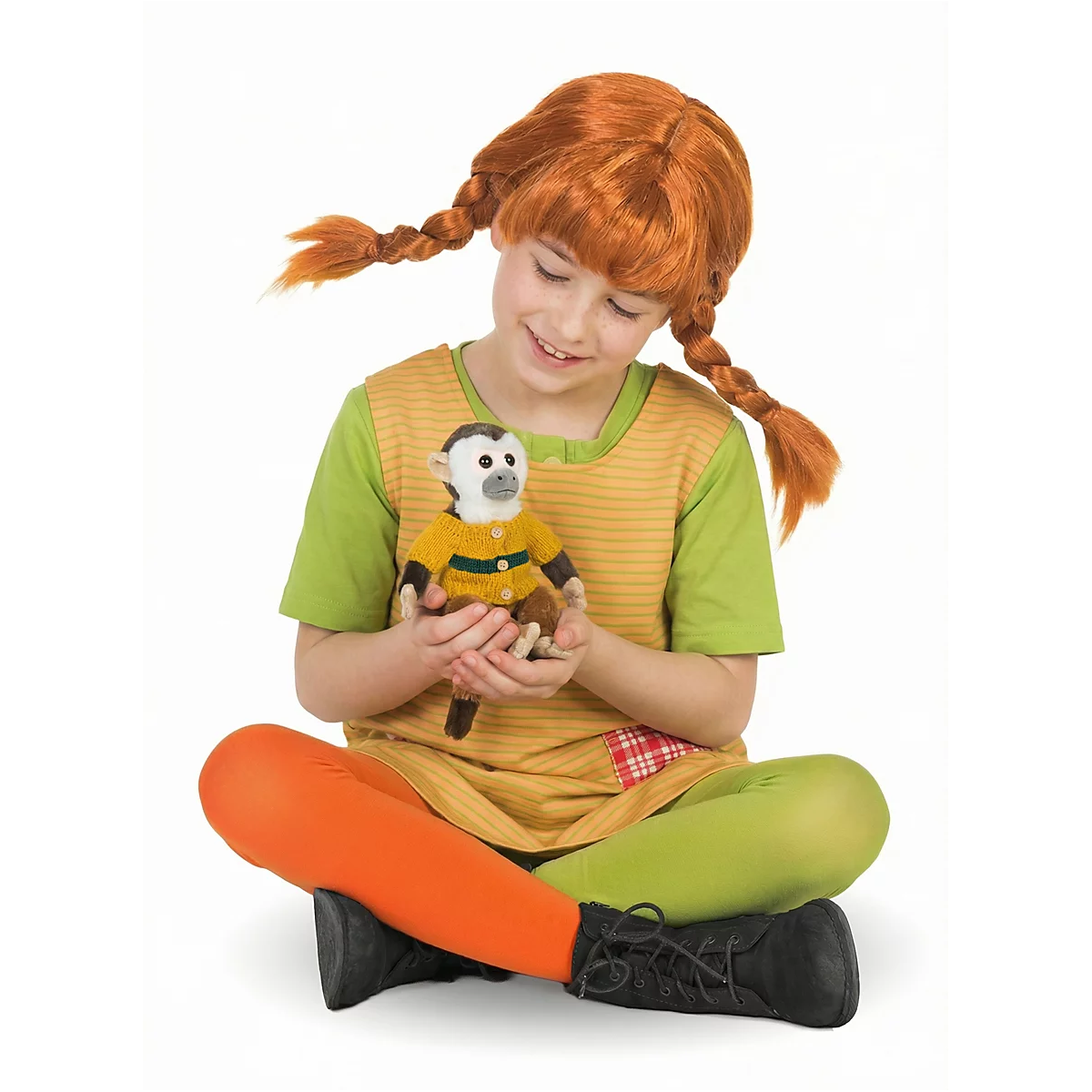 Charmigt mjukisdjur föreställande Herr Nilsson, den busiga lilla apan som är känd från berättelserna om Pippi. Med sina stora uttrycksfulla ögon, mjuka päls och stickade tröja med dekorativa knappar är han redo för både lek och mys.