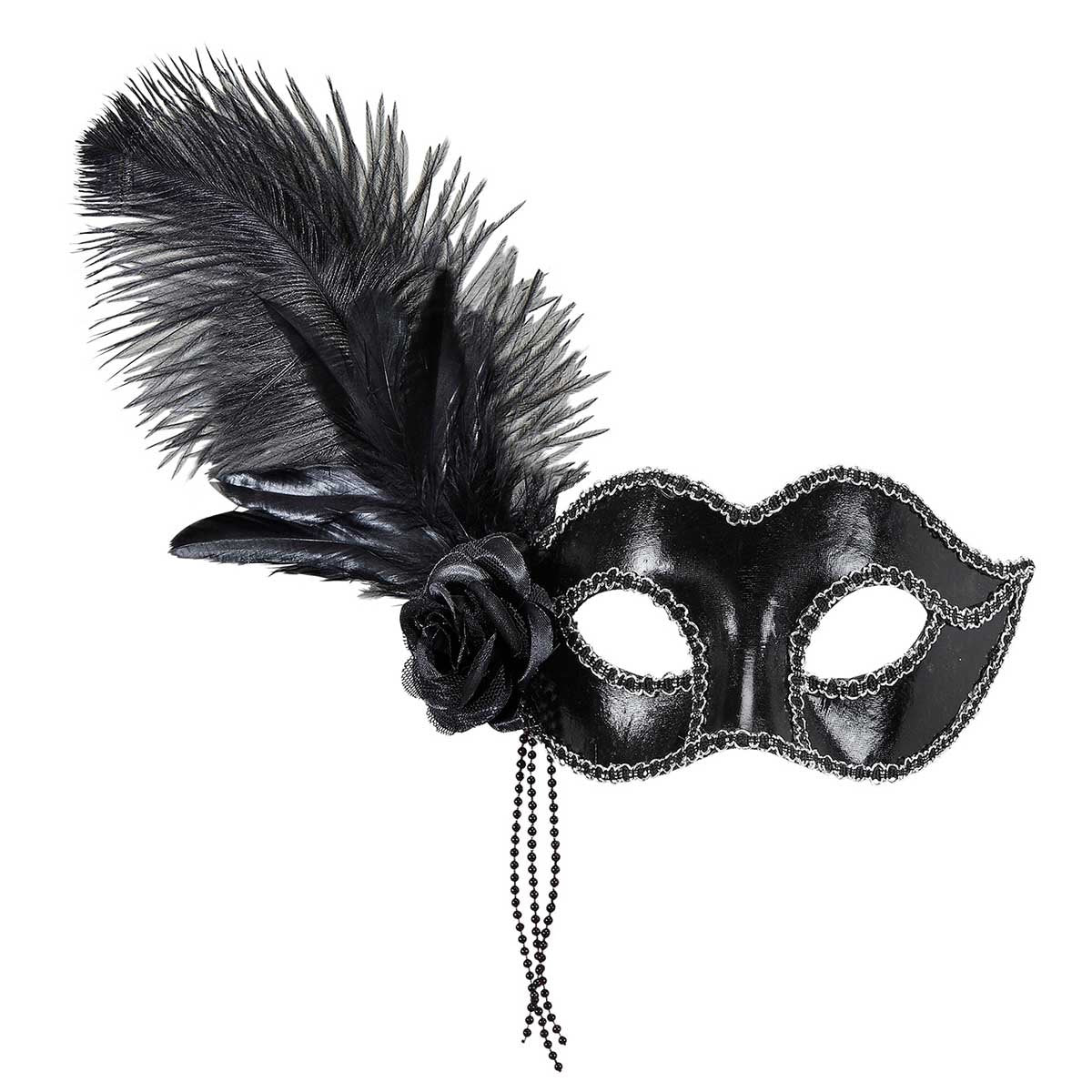 Har du blivit bjuden på maskeradbal eller ska du på en gatsbyfest eller nyårsfest, en ögonmask håller dig anonym och lite extra intressant. Denna svarta venice masken har en svart fjäder på sidan som gör att du står ut lite extra på maskeradfesten.