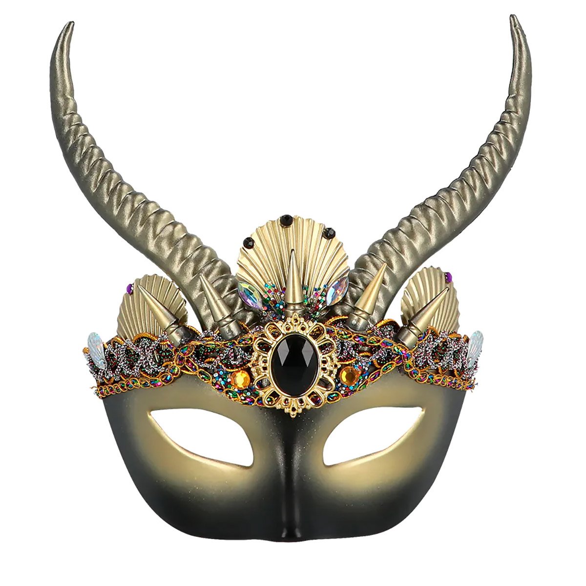 Den fästs enkelt runt huvudet med ett elastiskt band och sitter bekvämt hela kvällen – oavsett om du rör dig på en mystisk maskeradbal, en voodooritual eller ett karnevalståg i full färgprakt. Den passar perfekt till både eleganta och kraftfulla utstyrslar där du vill framstå som en andlig ledare eller havets beskyddare.