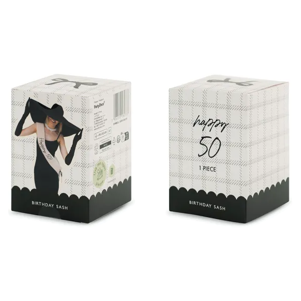 Fira 50-årsdagen med stil med detta dekorativa ordensband med texten “Happy 50!”. Den eleganta designen gör det till en perfekt accessoar för födelsedagsfirandet.