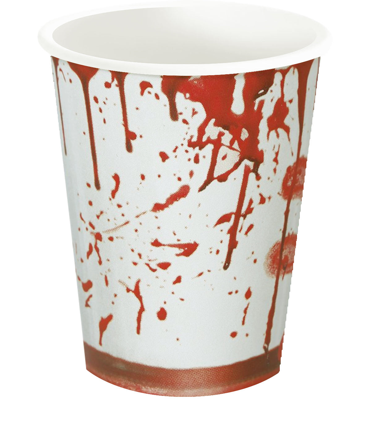 Skapa en riktigt skrämmande stämning på festen med dessa vita pappersmuggar stänkta av blodröda detaljer. Den dramatiska designen gör dem till ett perfekt inslag på Halloween, mordgåtor eller andra skräckteman där dukningen ska sticka ut och väcka rysningar. Muggarna är tillverkade i tåligt papper och passar lika bra för kalla drycker som för varma – från saft och läsk till kaffe eller glögg. Eftersom de är engångsmuggar slipper du disk och kan enkelt städa undan efteråt. Kombinera gärna med blodiga tallrikar, servetter och dekorationer för en helhetsdukning som verkligen imponerar på gästerna.