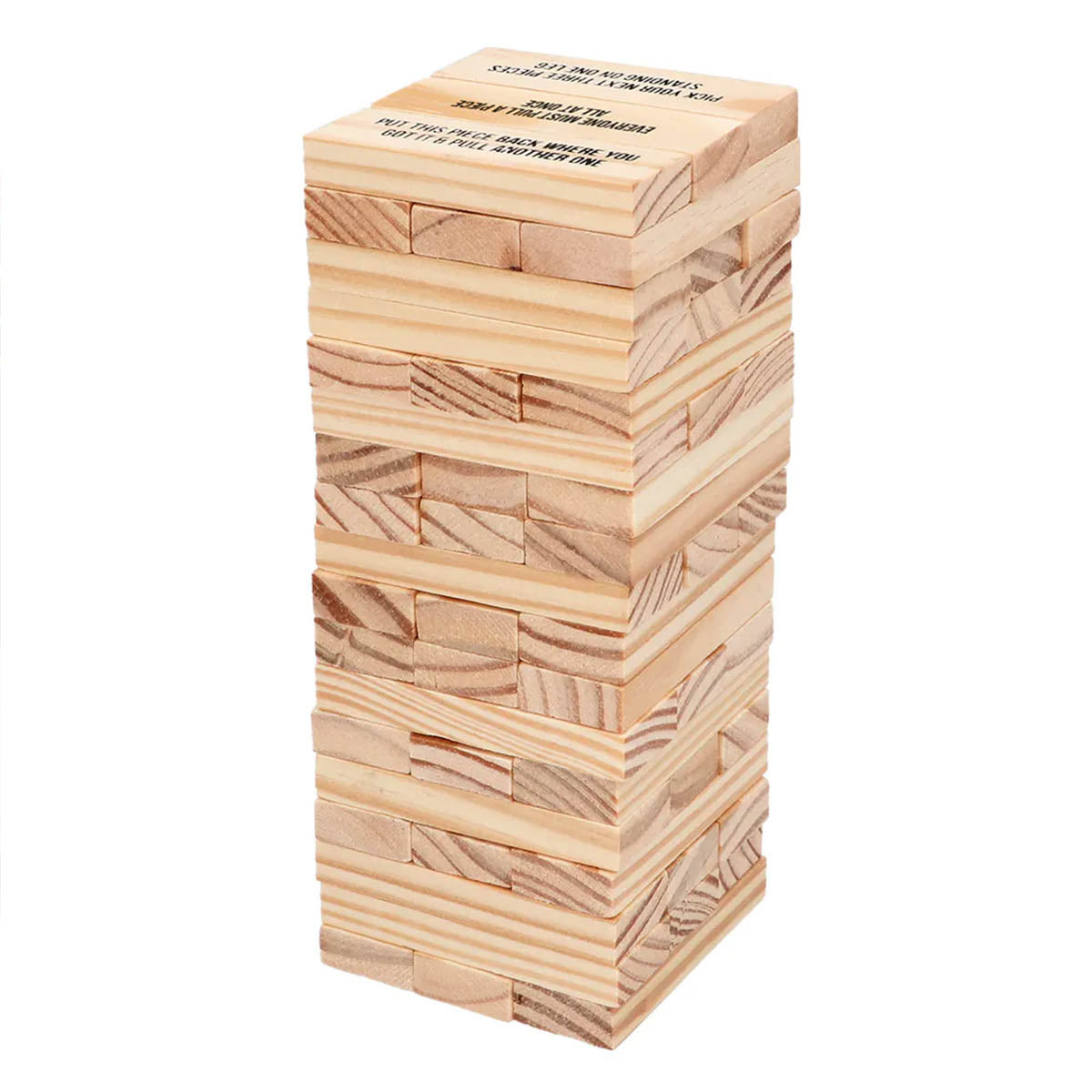 Partyspelet drinking tower är ett stapelspel där varje kloss har en överraskning som smakar mer än bara trä. Detta är den vuxna versionen av det klassiska stapelspelet, där klossarna är märkta med galna uppdrag, pinsamma påståenden eller... shots!