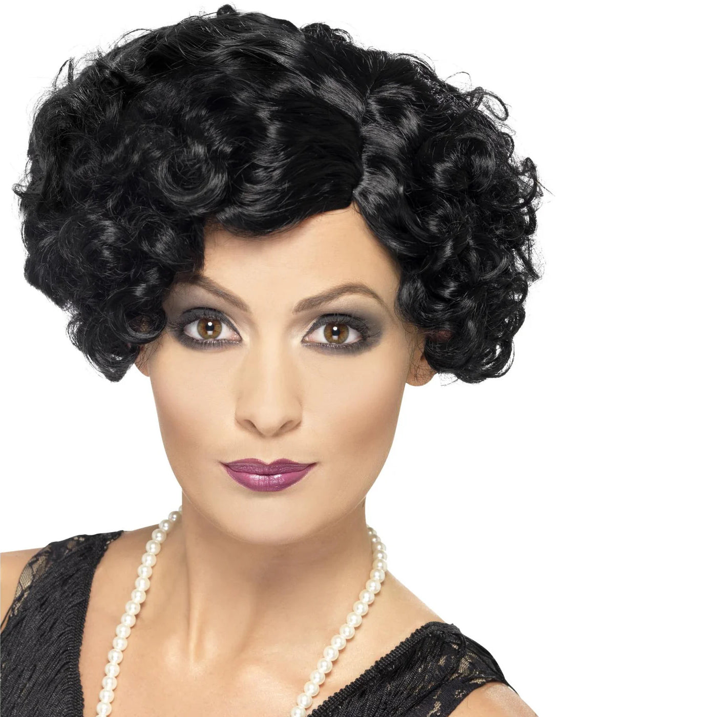 Kort krullig peruk i svart som ger ett fylligt och livfullt uttryck och passar utmärkt till 20-tals tema. Perfekt som tillbehör för maskerad, temafest, Gatsby party, show eller teater när du vill skapa en klassisk look inspirerad av jazzåldern. De täta lockarna ger peruken volym och karaktär och gör den lätt att kombinera med flapperklänningar och andra tidstypiska kostymer. Peruken är bekväm att bära och sitter bra, vilket gör den till ett smidigt och effektfullt val för festliga tillfällen.