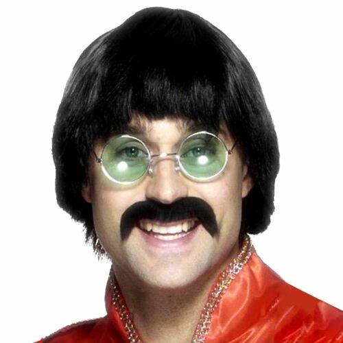 Svart peruk med klassisk 60-talsinspirerad frisyr – perfekt för dig som vill rocka en retrolook med humor och stil! Den raka luggen och rundade frisyren ger en tydlig Beatles-känsla, medan den tjocka mustaschen fulländar looken. Passar utmärkt till temafester, maskerad eller musikaliska uppträdanden. Peruken sitter bekvämt tack vare ett elastiskt nät som anpassar sig efter huvudets form