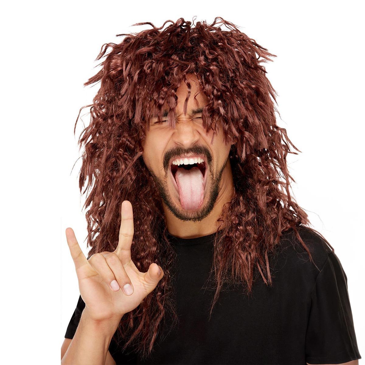 Brunhårig hårdrocksperuk som passar många årtionden.
