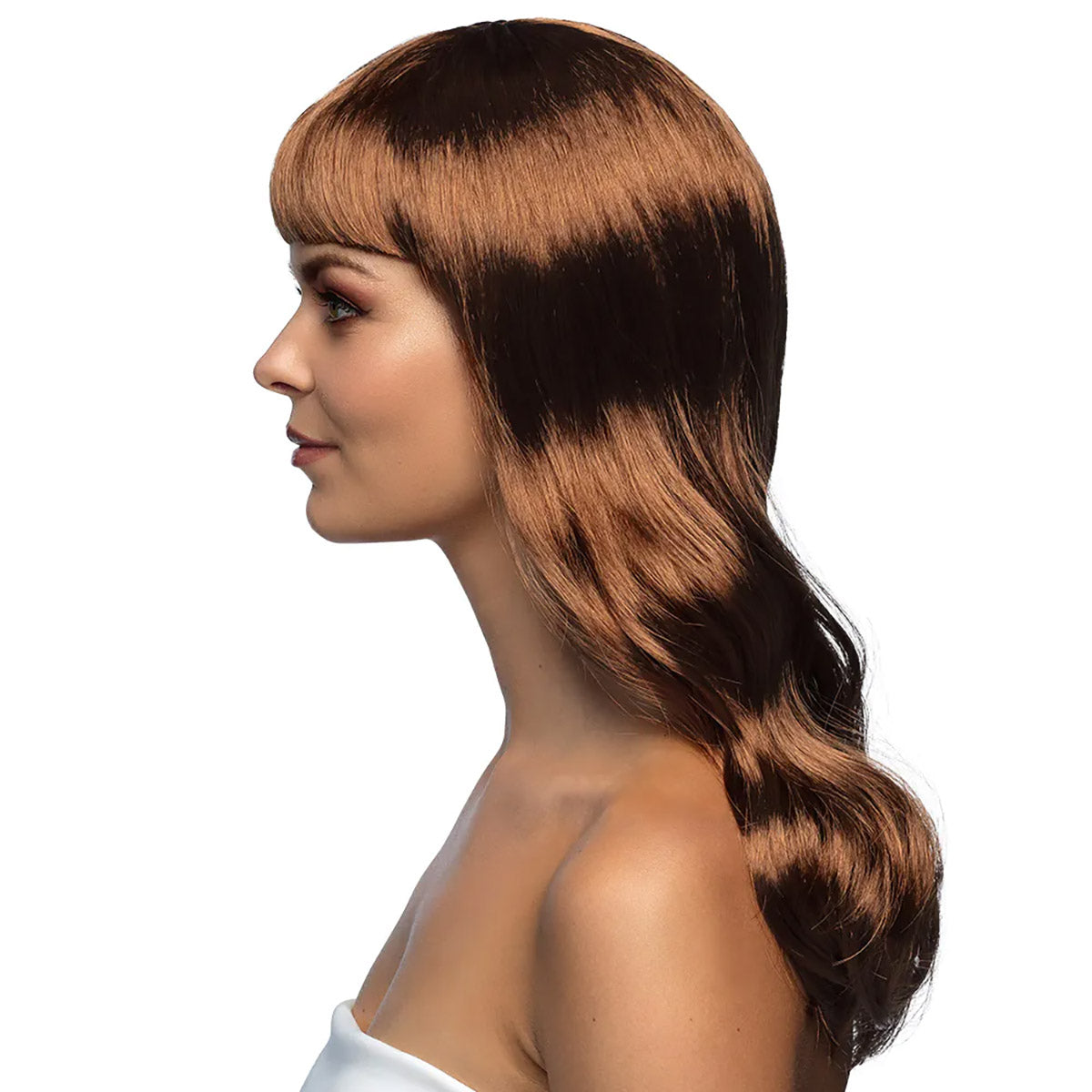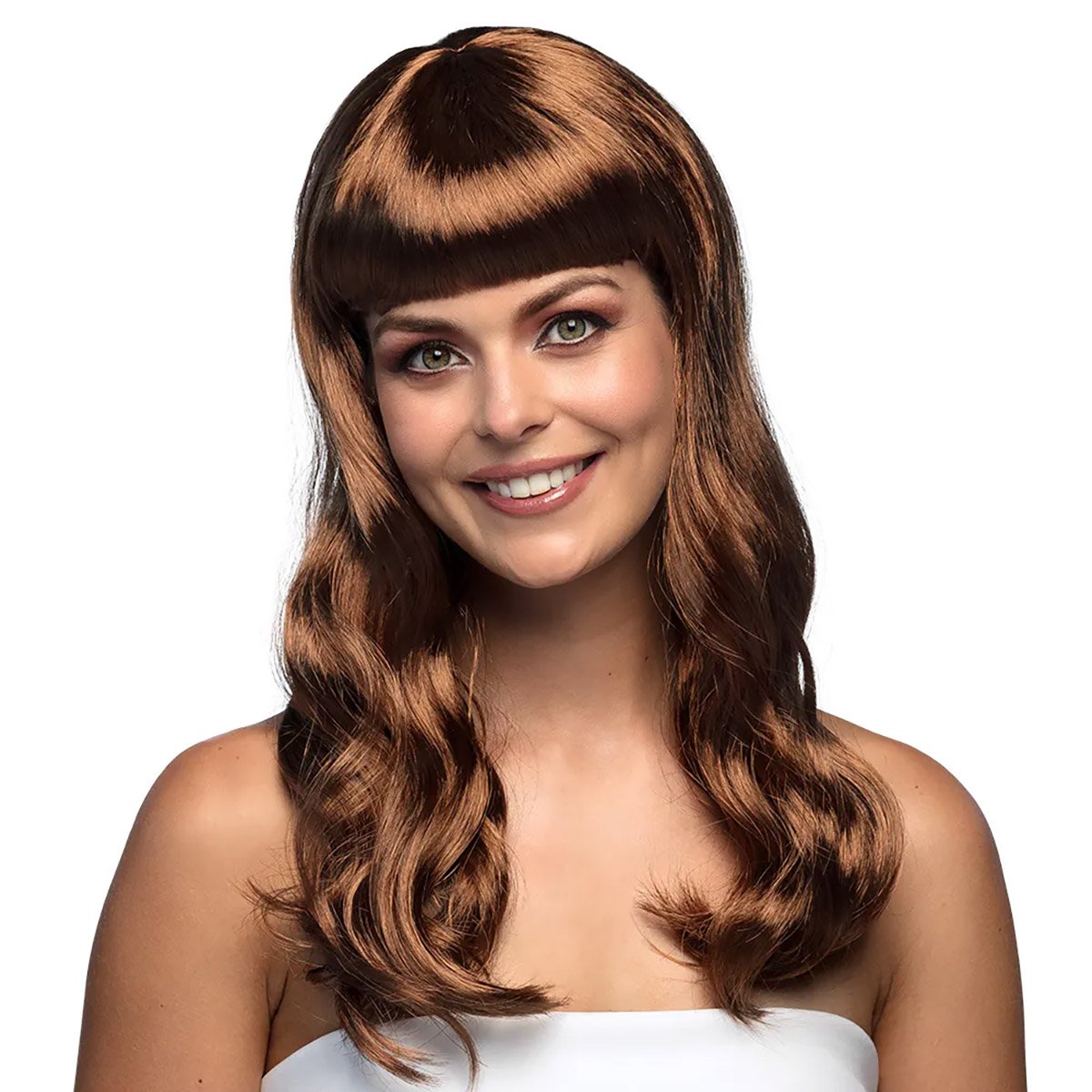 Med sina långa, mjukt vågiga längder och en markerad lugg ger Chique-peruken en elegant silhuett som passar många olika stilar. Den finns i ett brett spektrum av färger – från klassiskt svart eller blond till statement-nyanser som isrosa, koppar, blått, rött och vitt.