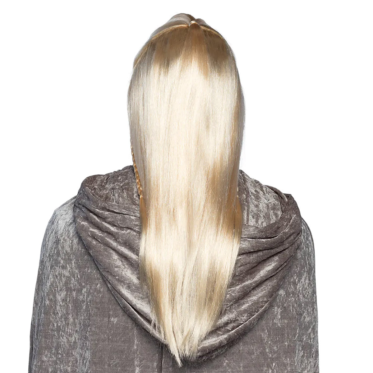Peruken är gjord i syntetfiber med naturlig glans och justerbart nät för bekväm passform. Den har två tunna, flätade partier på sidorna för en autentisk känsla. Komplettera med alvöron, kåpa eller båge för en episk look som känns direkt hämtad från en fantasyfilm.