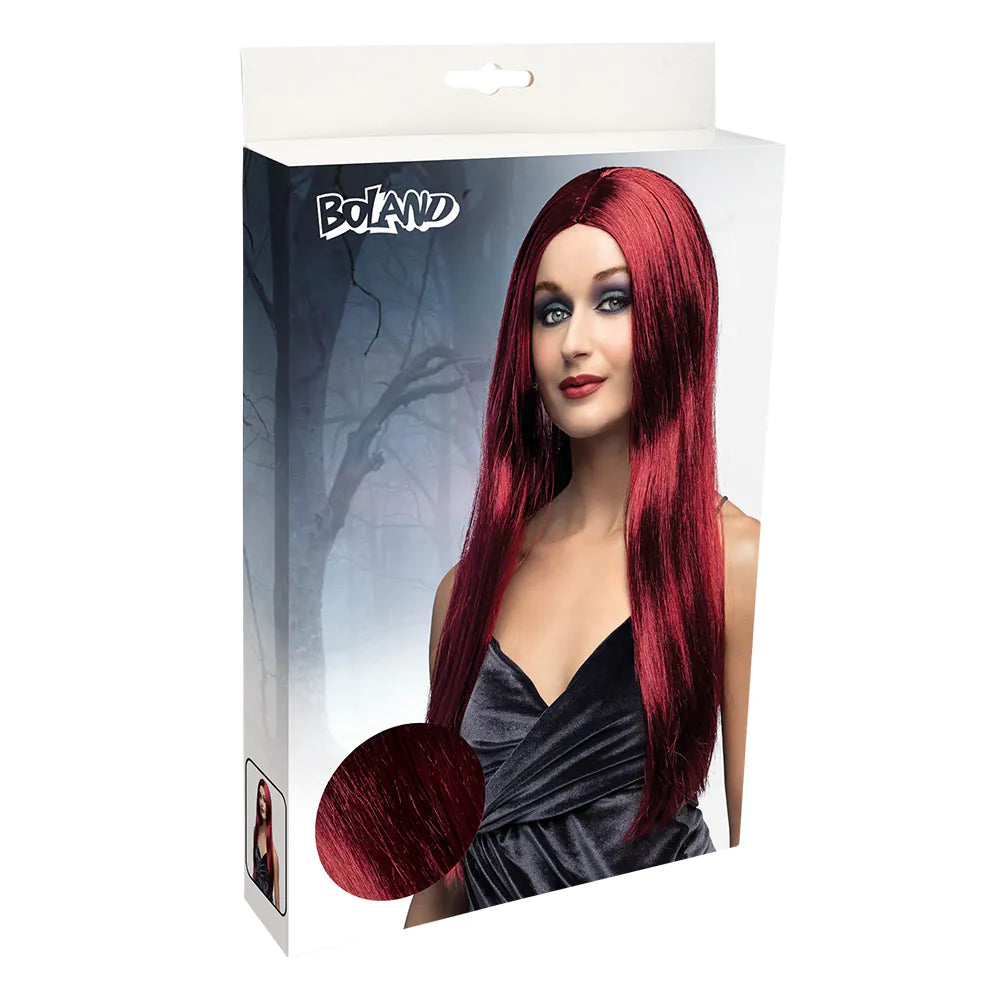 Denna vinröda peruk ger en dramatisk och iögonfallande look, perfekt för Halloween eller en spännande maskerad. Med sina långa, glänsande strån och den rika färgen, passar den utmärkt för en häx- eller vampyroutfit. Peruken ger din kostym en elegant och mystisk känsla som garanterat kommer att fånga allas uppmärksamhet på festen.
