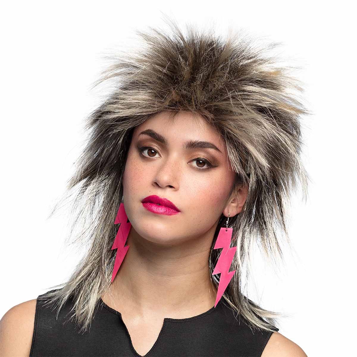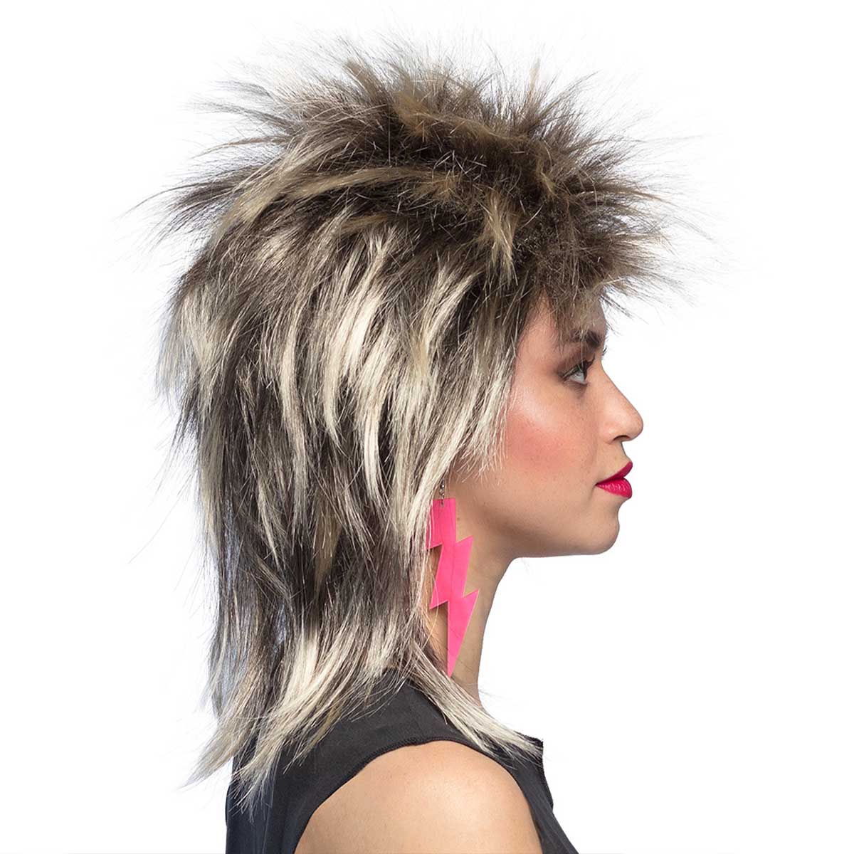 Sätt fart på tidsmaskinen och dyk tillbaka till det färgstarka 80-talet med denna spektakulära peruk! Med sin perfekta blandning av brun och grått är denna peruk din biljett till varje nostalgisk musikfestival eller maskerad. Stilad i en klassisk 80-tals punkfrisyr, utrustad med volym som skulle göra varje rockdiva avundsjuk, är du redo att ta scenen.