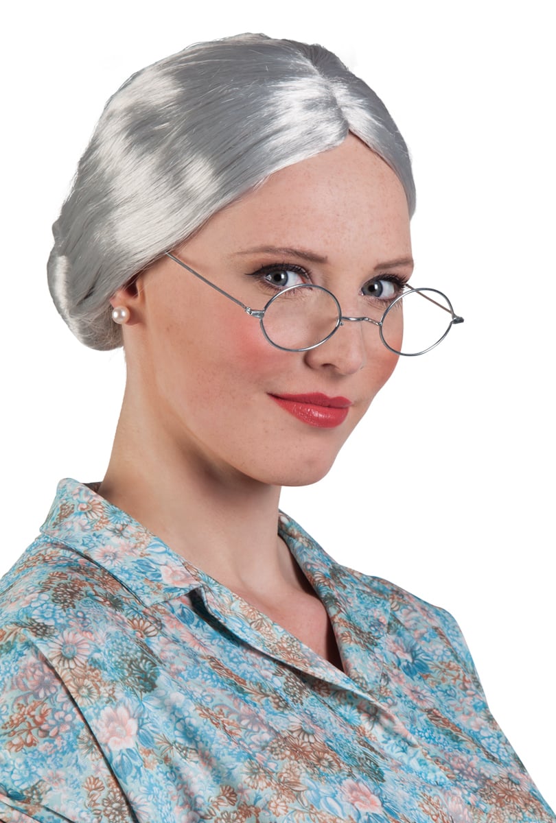 Grått är flott! Med denna gråa peruk som är friserad i en stram knut, kan du både hylla din mormor på maskeraden och agera tomtemor på julafton.