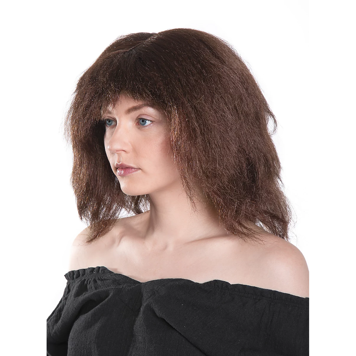 Skapa en vild och äventyrlig look med denna Ronja-inspirerade peruk. Peruken har ett fylligt, rufsigt hår med naturlig volym som ger en busig och gammeltida känsla – perfekt för maskerad, teater eller temafest.