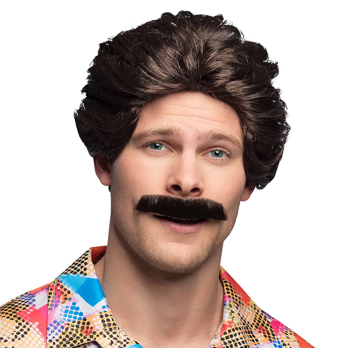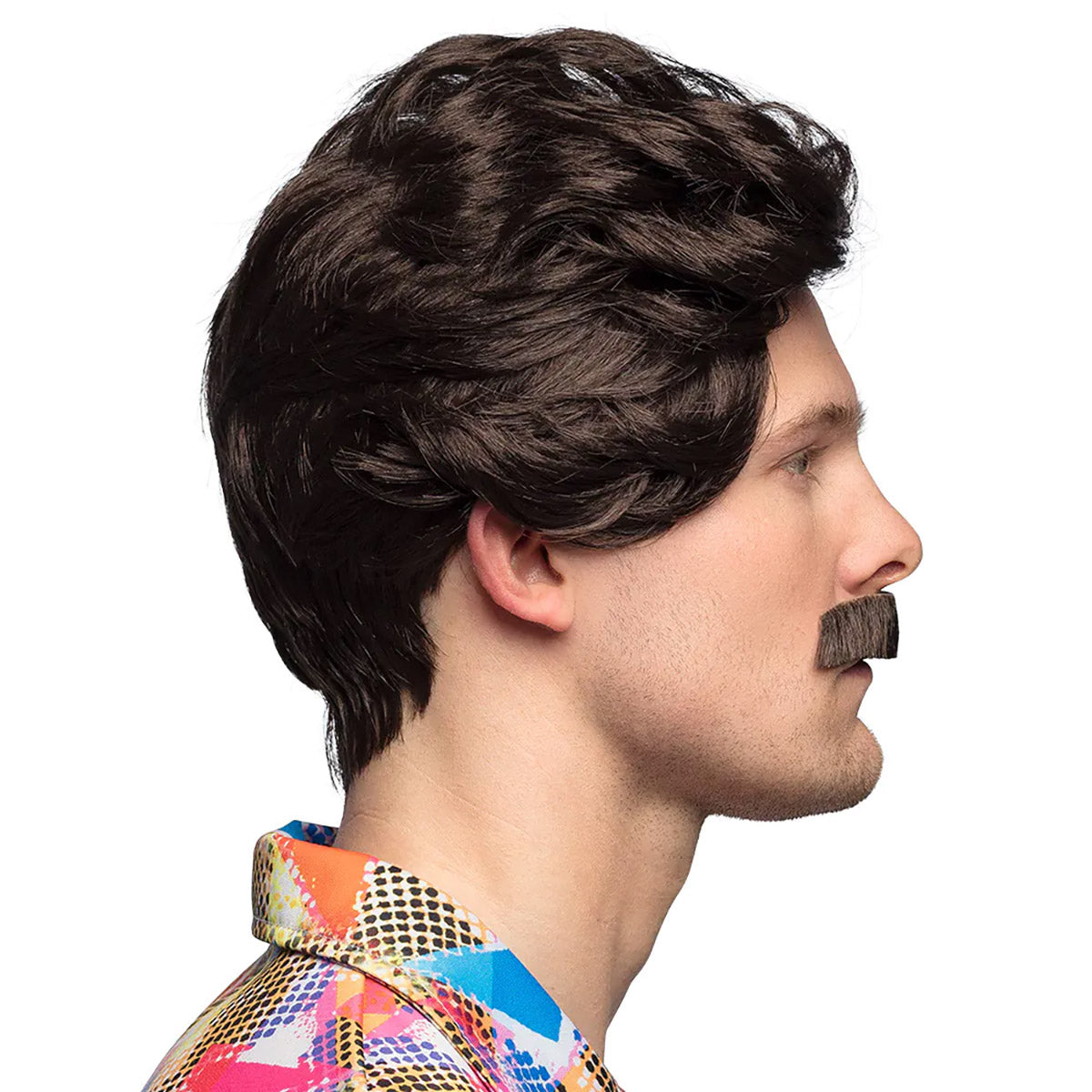 Peruken Vance är den ultimata tidsmaskinen för dig som vill förvandla dig till en 70-talsikon – komplett med voluminöst svall och en mustasch som skriker funk. Denna brunhåriga maskeradperuk med tillhörande mustasch tar dig direkt till dansgolvet med sin autentiska retrostil.