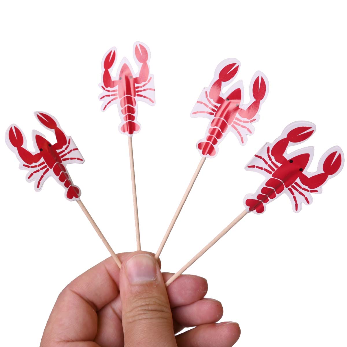 Ge din kräftskiva den perfekta touchen med fantastiska kräft-picks! Detta paket innehåller tandpetare som är 13 cm långa och har en charmig dubbelsidig kräfta på toppen. Dessa picks är perfekta för att dekorera ditt matbord och ge dina kräftor och andra läckra rätter en extra festlig känsla.