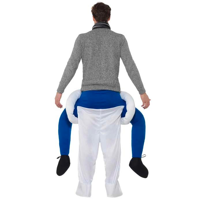 Piggyback! Ett extremt lyckat maskeradkoncept, hoppa i denna och du kommer garanterat att bli festens mittpunkt. Dräkten är i one size och passar alla vuxna. De fyllda benen gör att det ser ut som att du rider på figurens axlar.