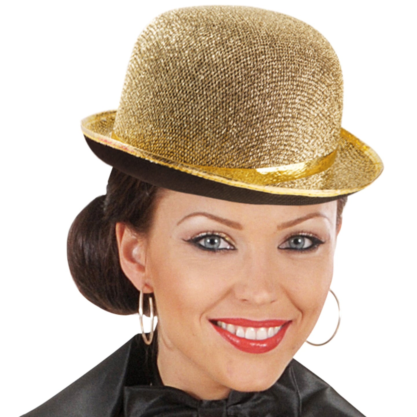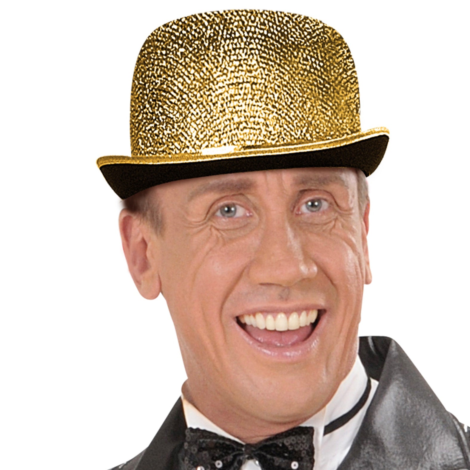 Sätt extra glans på festen med denna stiliga glitterhatt i klassisk bowler-modell! Hatten är täckt i skimrande guldsprakande glitter som fångar ljuset och ger ett riktigt festligt uttryck. Perfekt till nyår, temafester, schlagerkvällar, maskerader eller när du helt enkelt vill glänsa lite extra.