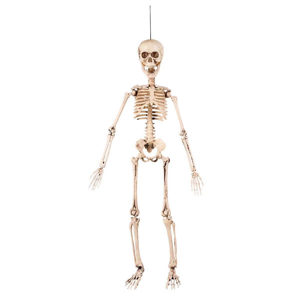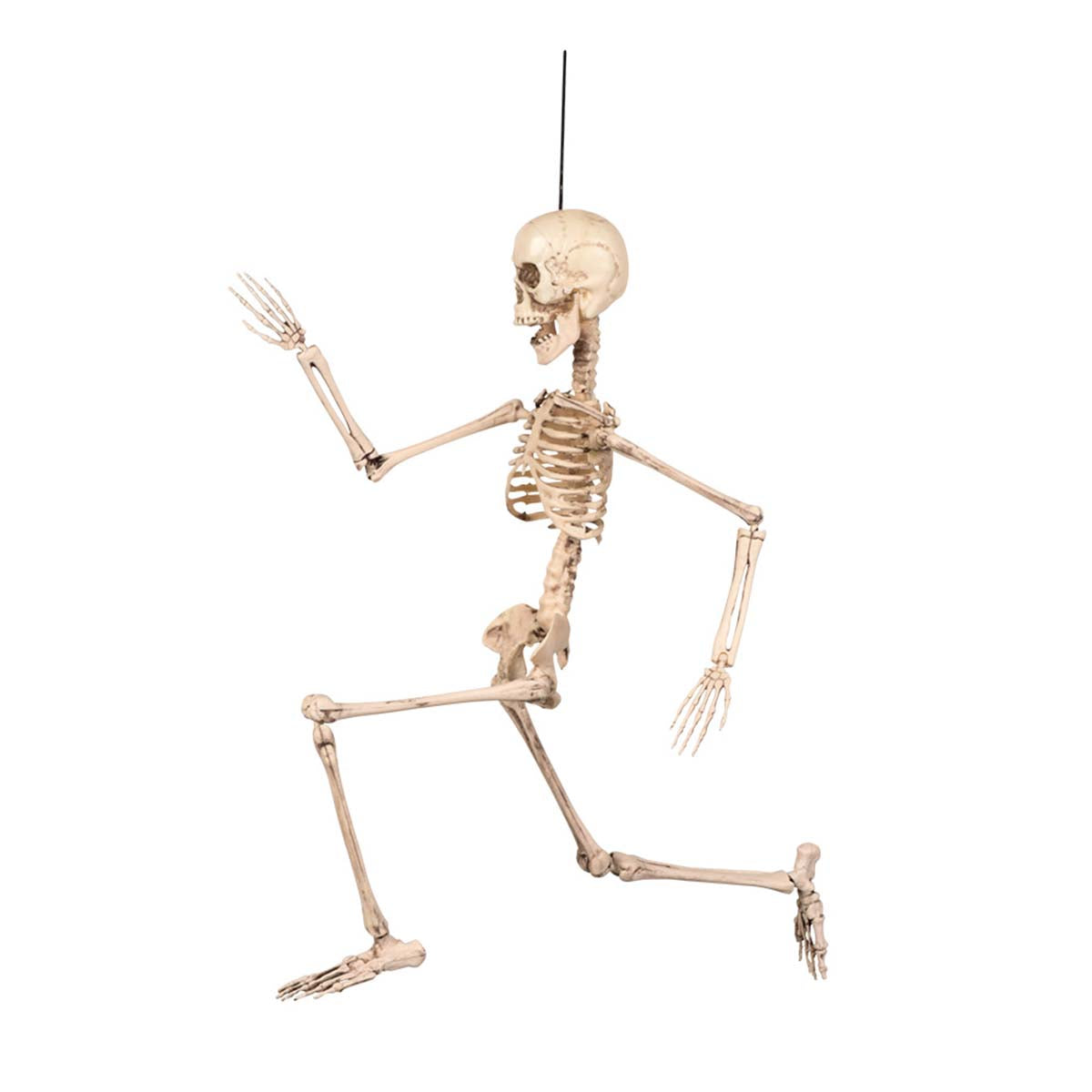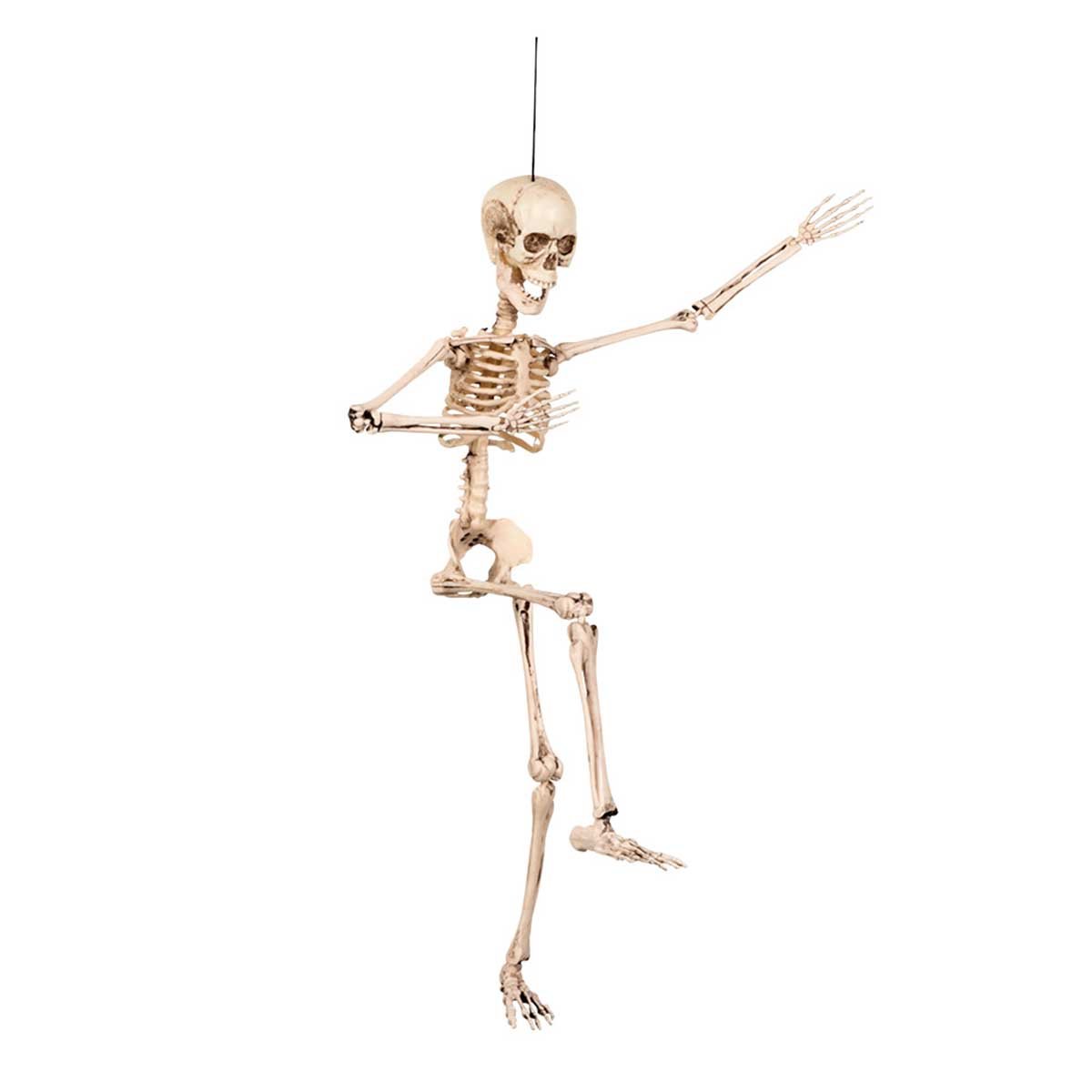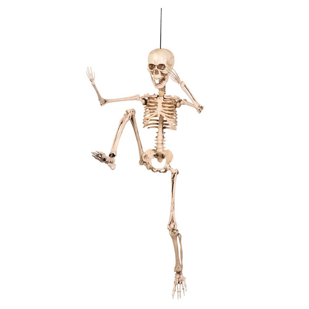 Ett härligt 50 cm högt skelett med ställbara leder så du kan få skelettet att hänga eller sitta i olika ställningar. En roligare halloweendekoration där du kan få skelettet att peka åt vissa håll och ge skelettet skyltar för att hitta runt i lokalen eller om det sitter vid matbordet och stirrar på en när man äter sin sita måltid på halloweenfesten.