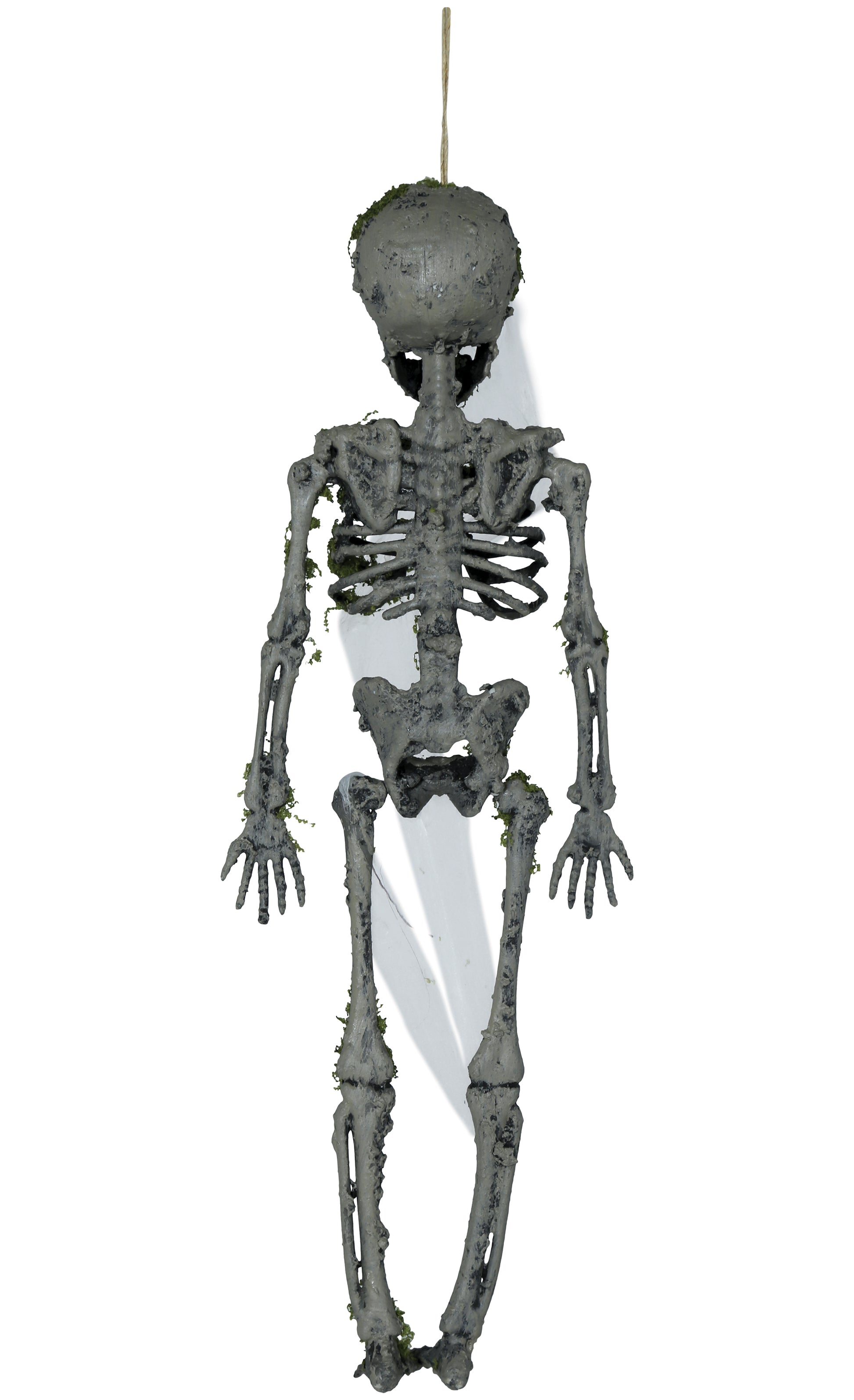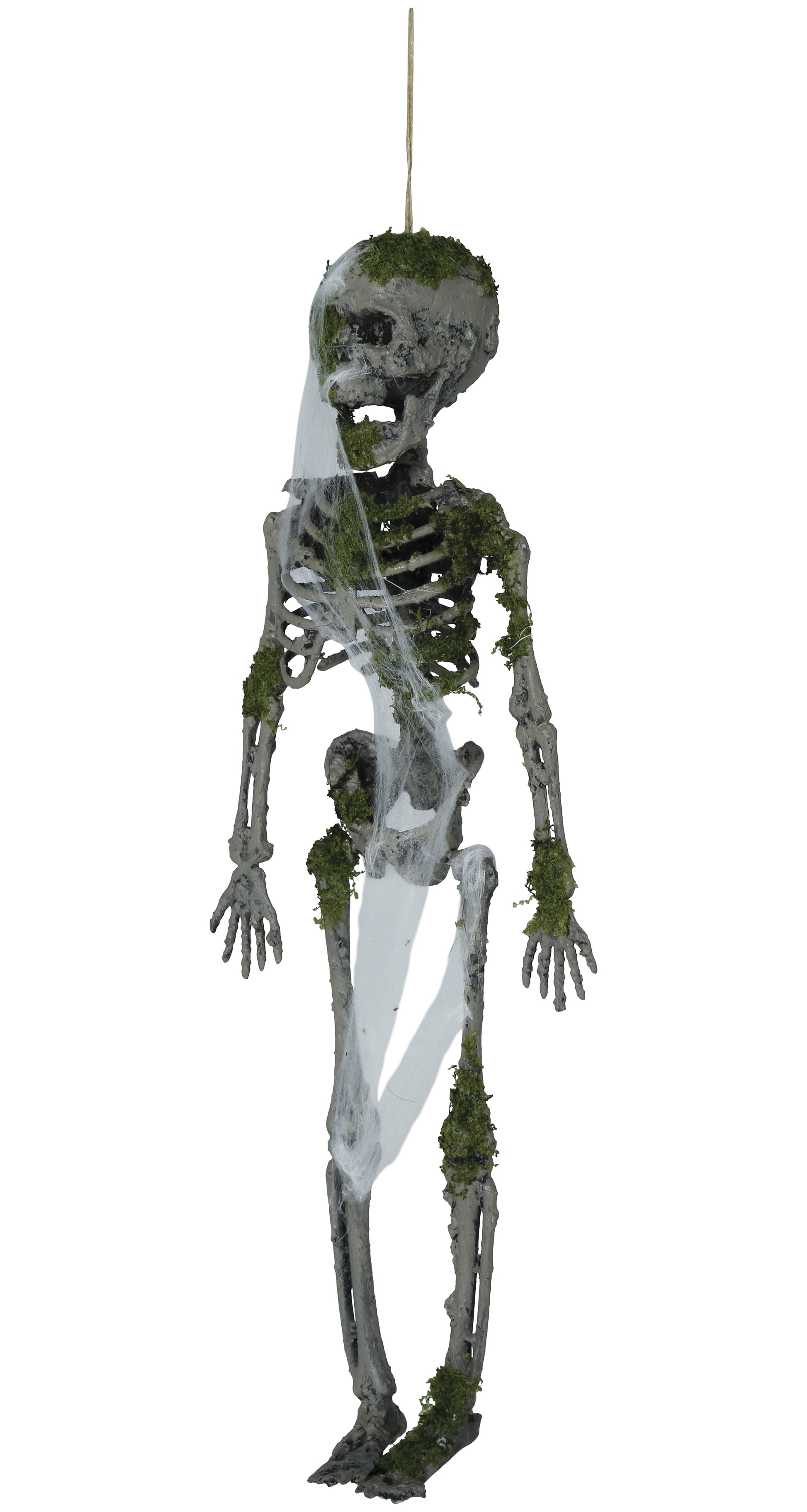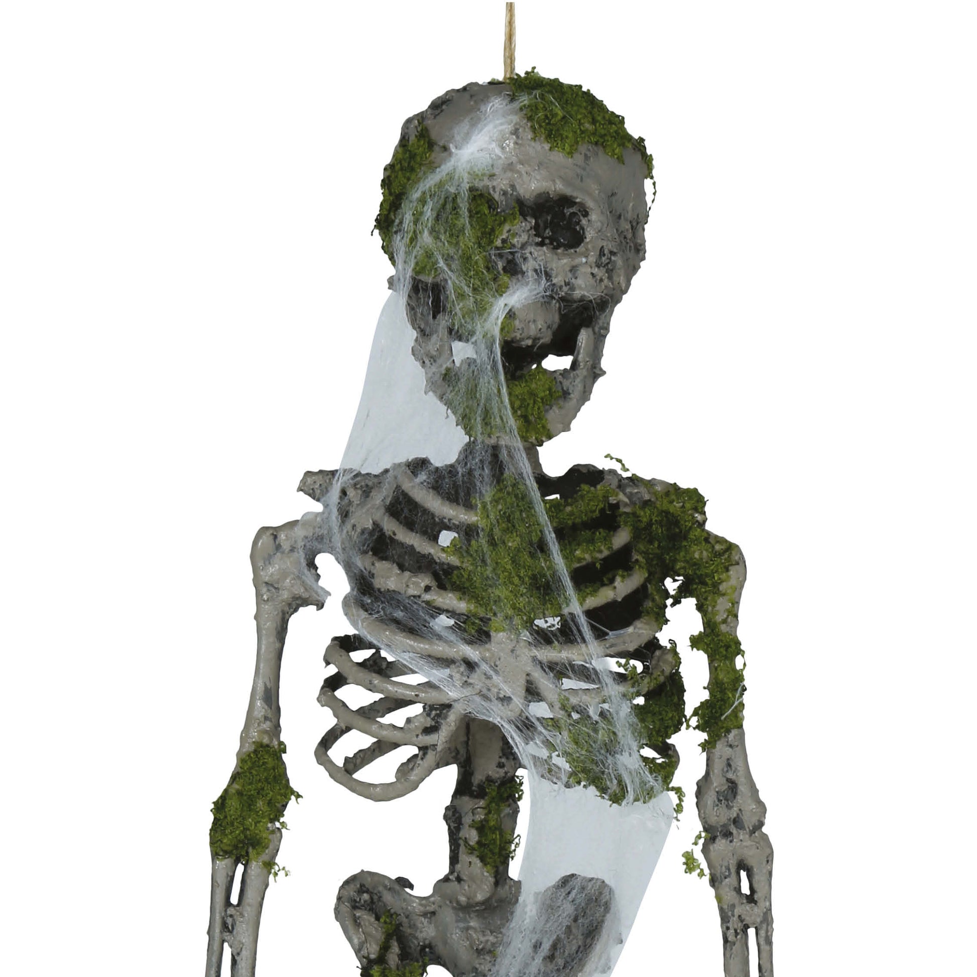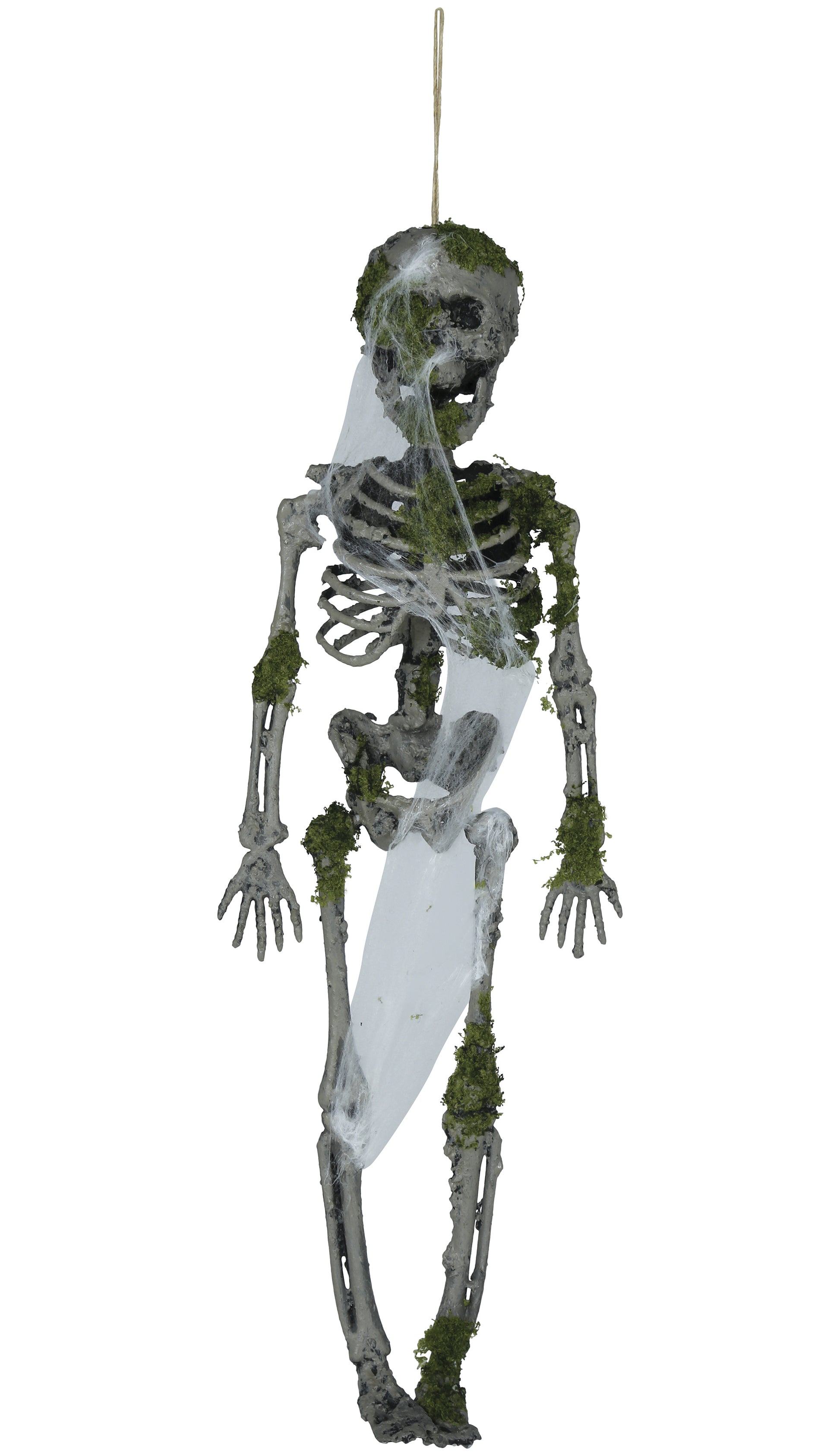 Ge din Halloween en extra dos skräck med detta hängande gråa skelett på 35 cm. Skelettet är täckt av mossa och spindelnät som ger ett gammalt, övergivet och riktigt spöklikt utseende. Den kompakta storleken gör den enkel att placera var som helst – i dörröppningen, på väggen, i ett träd eller bland andra dekorationer. Perfekt för att skapa en läskig atmosfär både inne och ute och en självklar detalj på Halloweenfesten eller spökvandringen.