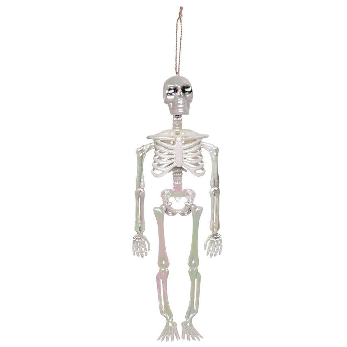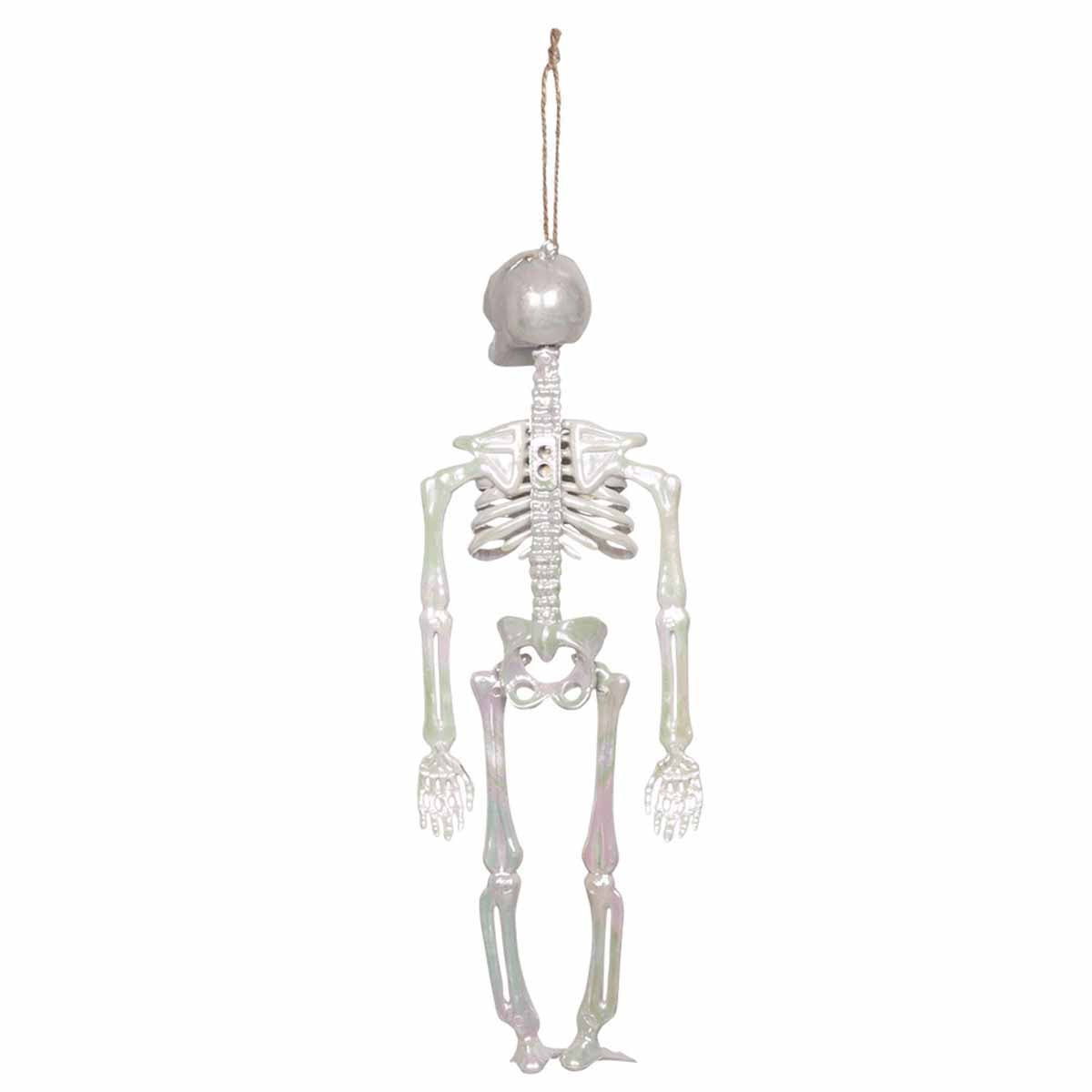 Dekorera upp halloween eller barnkalaset med ett fint skimrande skelett som är snyggare än vad det är läskigt. Detta 30 cm höga skelett kan man hänga upp året om med den fina skimrande färgen.