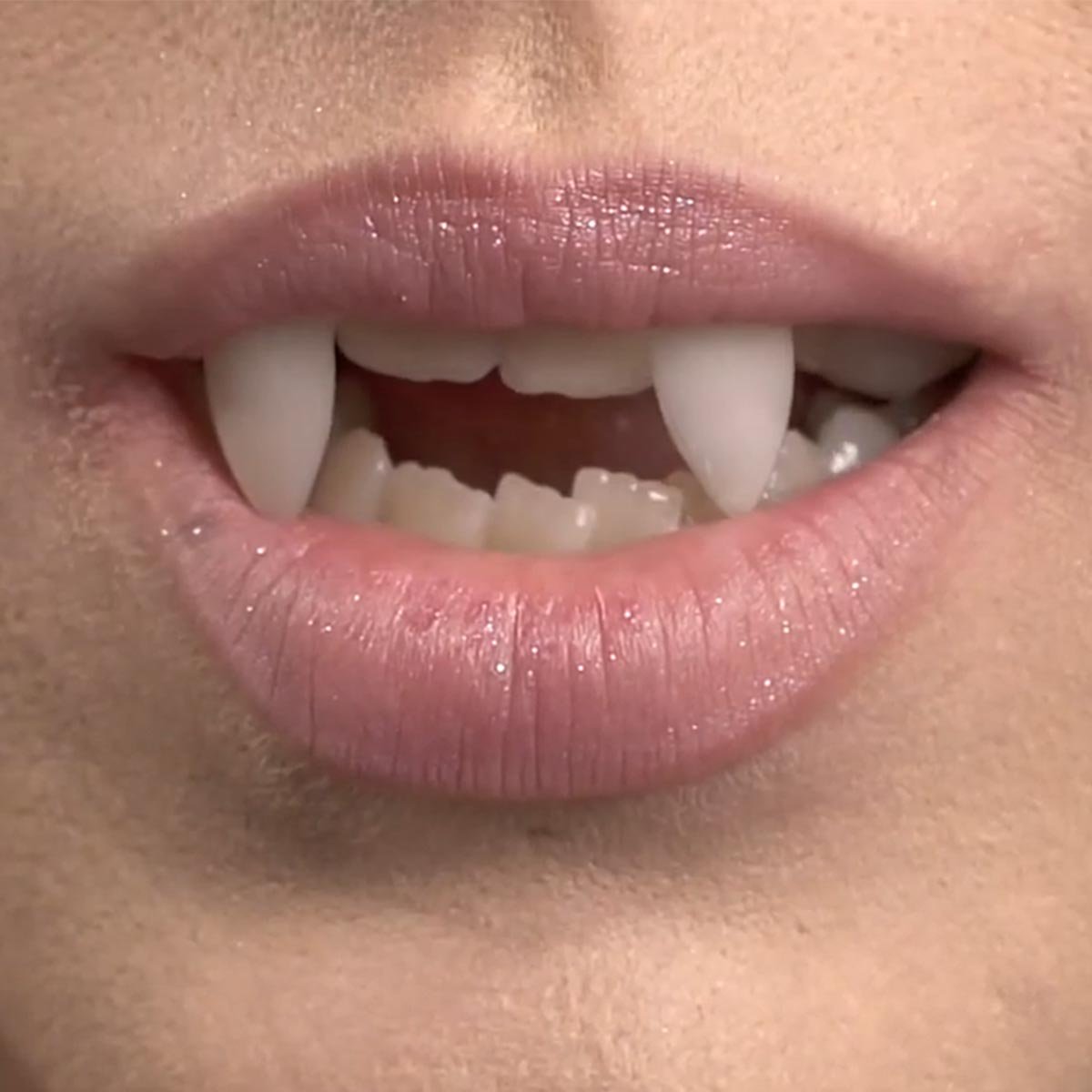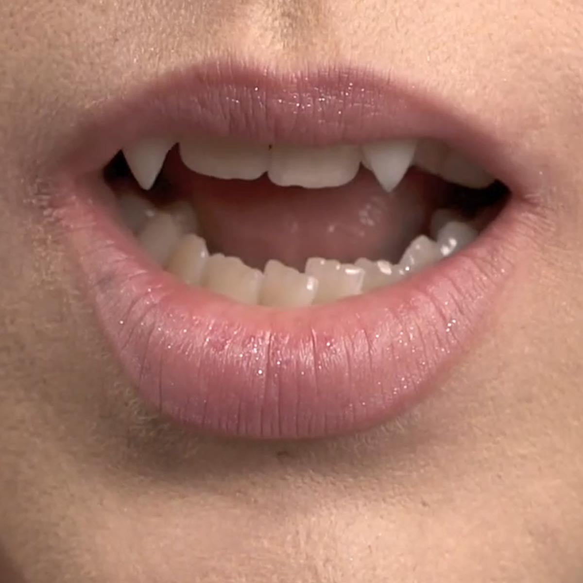 Riktigt effektfulla vampyrtänder på halloweenfesten.