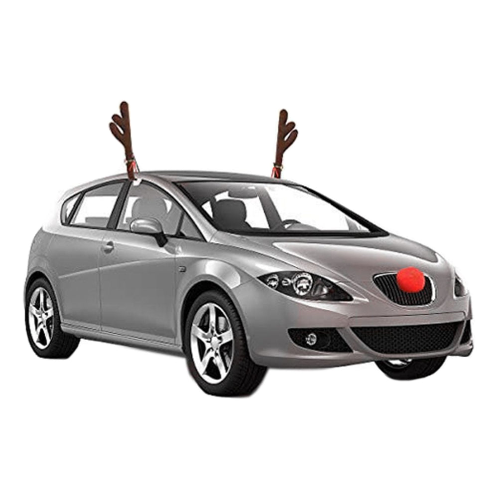 Ge bilen en festlig julmakeover med denna charmiga Rudolfkostym till bilen! Setet består av två mjuka, bruna renhorn som enkelt fästs på bilens sidor samt en stor, rund röd nos som sätts framtill – och vips förvandlas din bil till självaste Rudolf med röda mulen.
