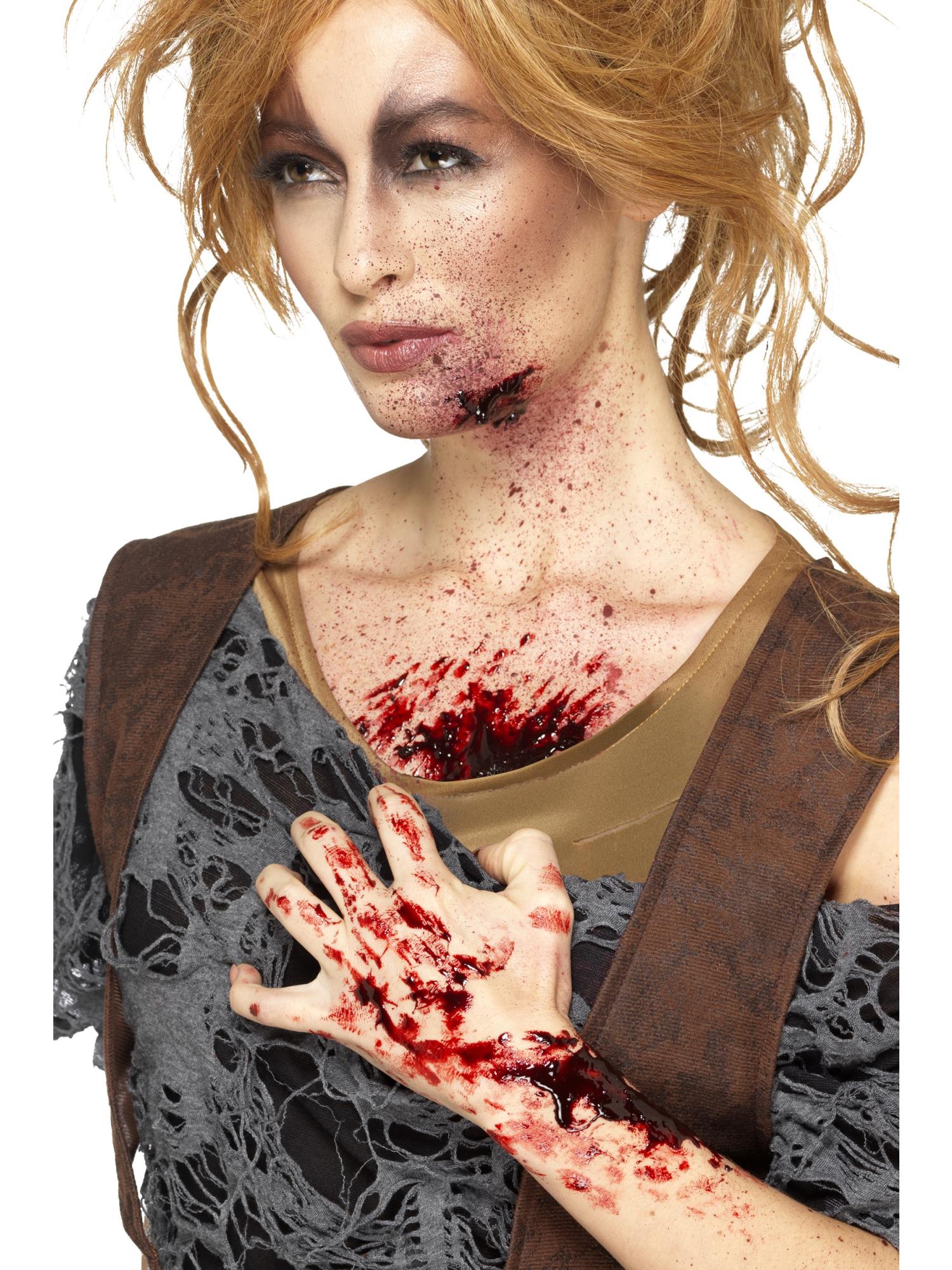Den tjocka konsistensen gör det enkelt att forma och bygga upp blodet på huden för att skapa djupa sår, skrapmärken eller gamla skador. När det torkar får det en mörkröd, skorpliknande yta som ser skrämmande verklig ut.