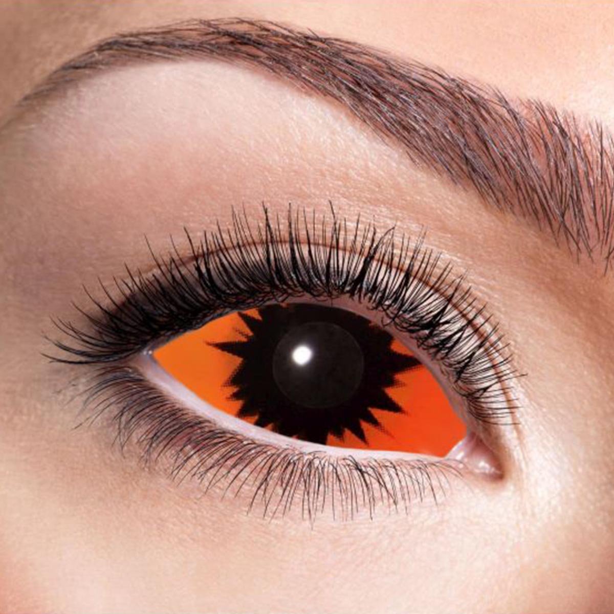 Den heltäckande scleralinsen har en bredd på 22 mm täcker den allra flesta av ögon, oavsett ögonfärg. Den här scleralinsen är orange med vad som ser ut som en trasig pupill som skapar ett härligt obehag och gör dina halloween sminkningar och utklädnader för halloween ännu mer effektiv. Halloweenlinser som överraskar och skapar wow-känsla. Klä ut dig till en vålnad med denna partylins och du kommer verkligen sticka ut.