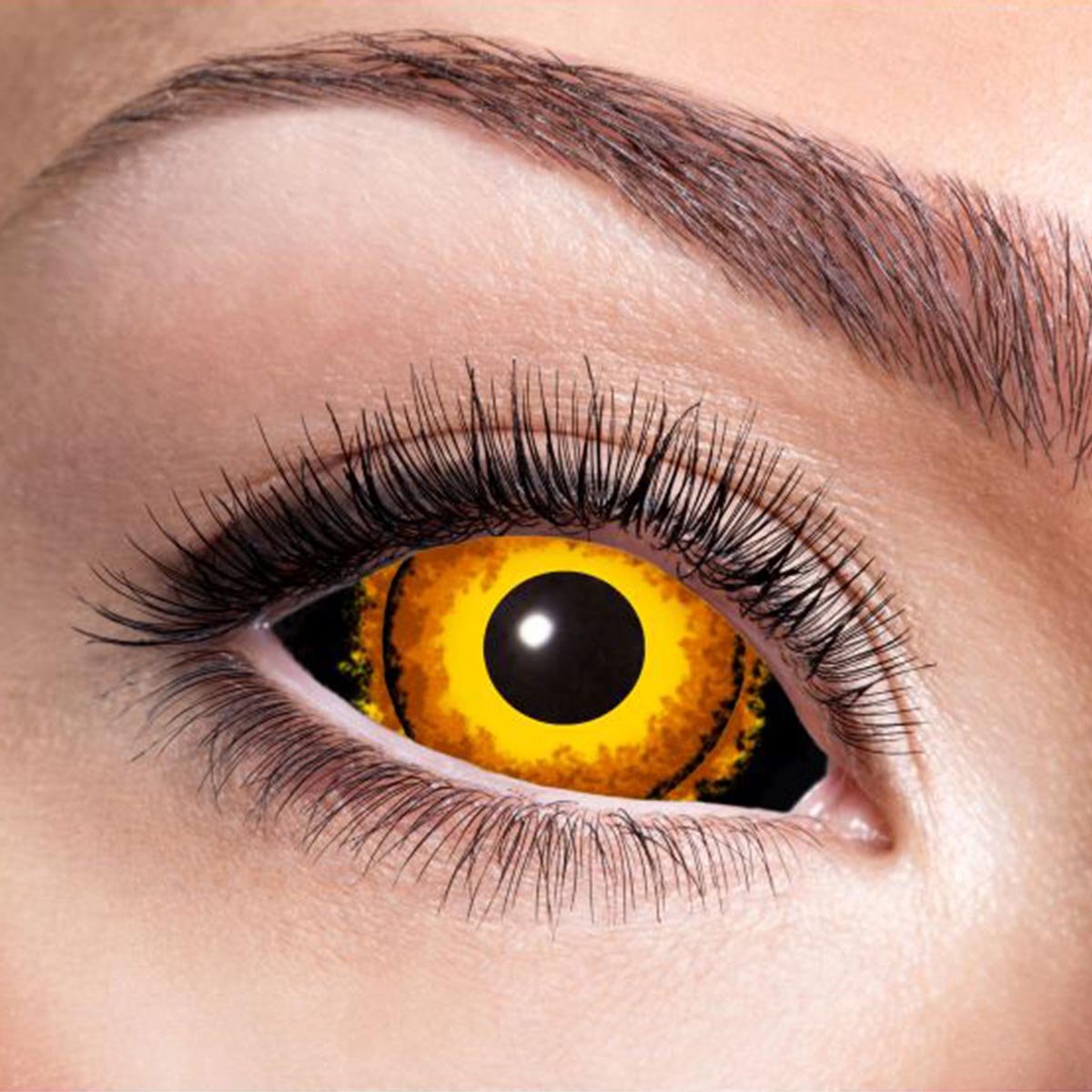 Den heltäckande scleralinsen har en bredd på 22 mm täcker den allra flesta av ögon, oavsett ögonfärg. Den här scleralinsen med ett brinnande eldklot likt solen passar till halloweenfesten och kommer få alla dina vänner att tappa hakan. Kom som superhjälte eller superskurk med en brinnande uppsyn på festen. De stora linserna täcker större delen av ögonen så man inte ser ögonvitan. Skapa överraskande sminkningar eller utklädnader med denna färglinsen.