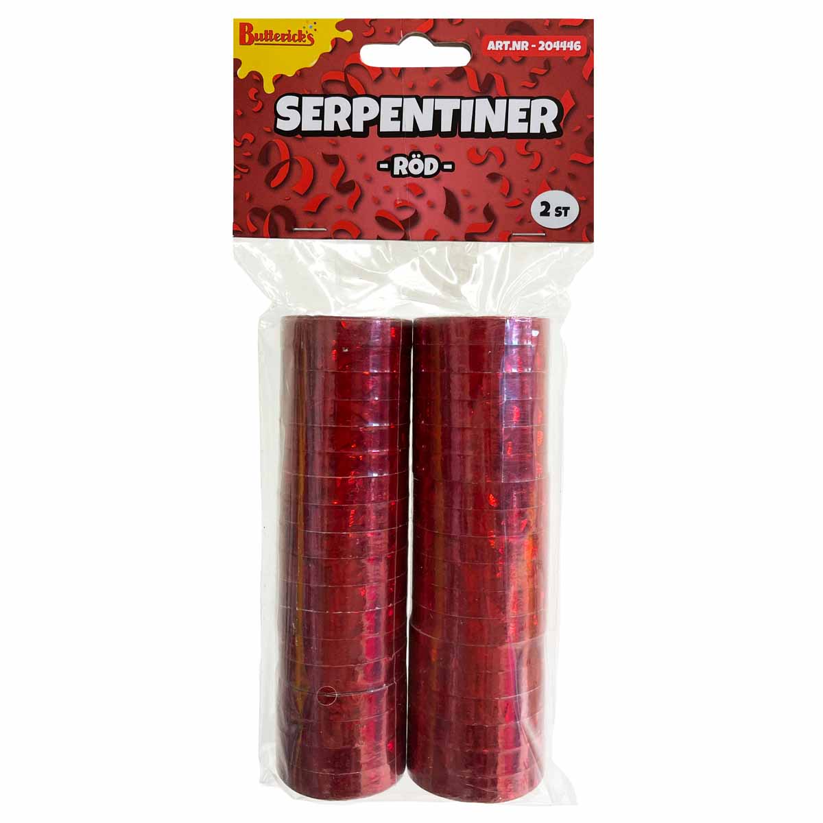 Buttericks röda glitter-serpentiner är av hög kvalitet och ger ett glansigt och fint intryck. Med ett tvåpack har du tillräckligt med serpentiner för att dekorera en mindre fest eller använda dem till flera tillfällen.