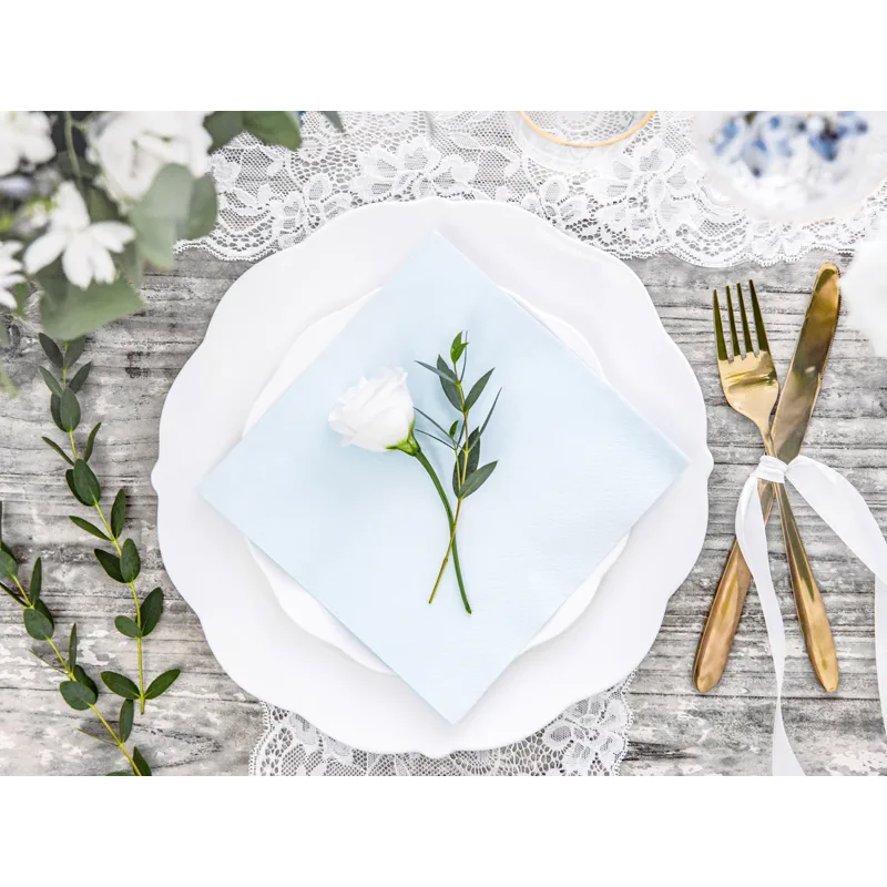 Gör dukningen extra festlig med vår engångsserie i ljusblått med guldkant!
