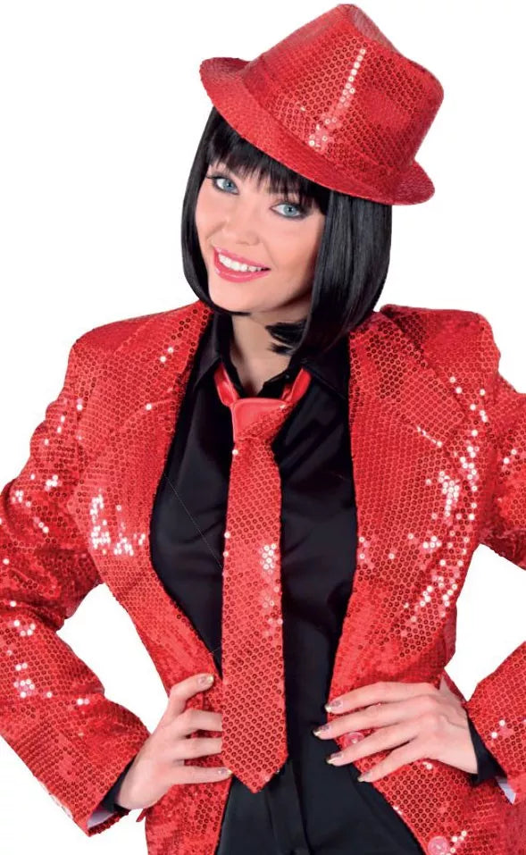 Denna röda paljett-slips är en festlig och iögonfallande accessoar som lägger till glamour och lekfullhet till din outfit. Med sina glittrande paljetter fångar slipsen ljuset och gör att du verkligen syns på festen. Perfekt för julfirandet, temafester eller andra festliga tillfällen där du vill sticka ut och ha kul med stil. Slipsen är enkel att kombinera med både skjorta och kostym och ger en glittrande detalj som sätter fart på feststämningen.