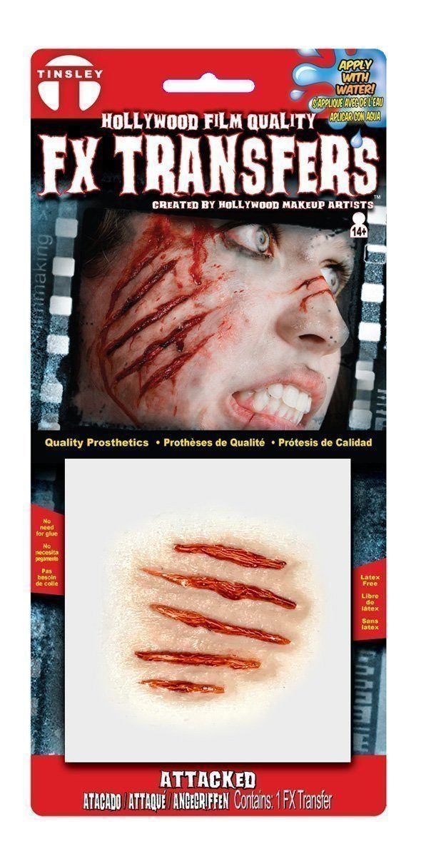 FX Transfers "Attacked" är den ultimata effekten för att skapa illusionen av blodiga rivmärken från en våldsam attack. Med sin naturtrogna design och detaljerade textur ser såren ut att vara direkt hämtade ur en Hollywoodproduktion. Perfekta för Halloween, skräcktemafester, film eller cosplay där du vill uppnå en riktigt dramatisk och skrämmande look. Appliceringen är enkel och smidig – allt du behöver är vatten, inga extra lim eller produkter behövs. Protesen sitter bekvämt, är hållbar hela kvällen och smälter naturligt in mot huden för en autentisk finish.