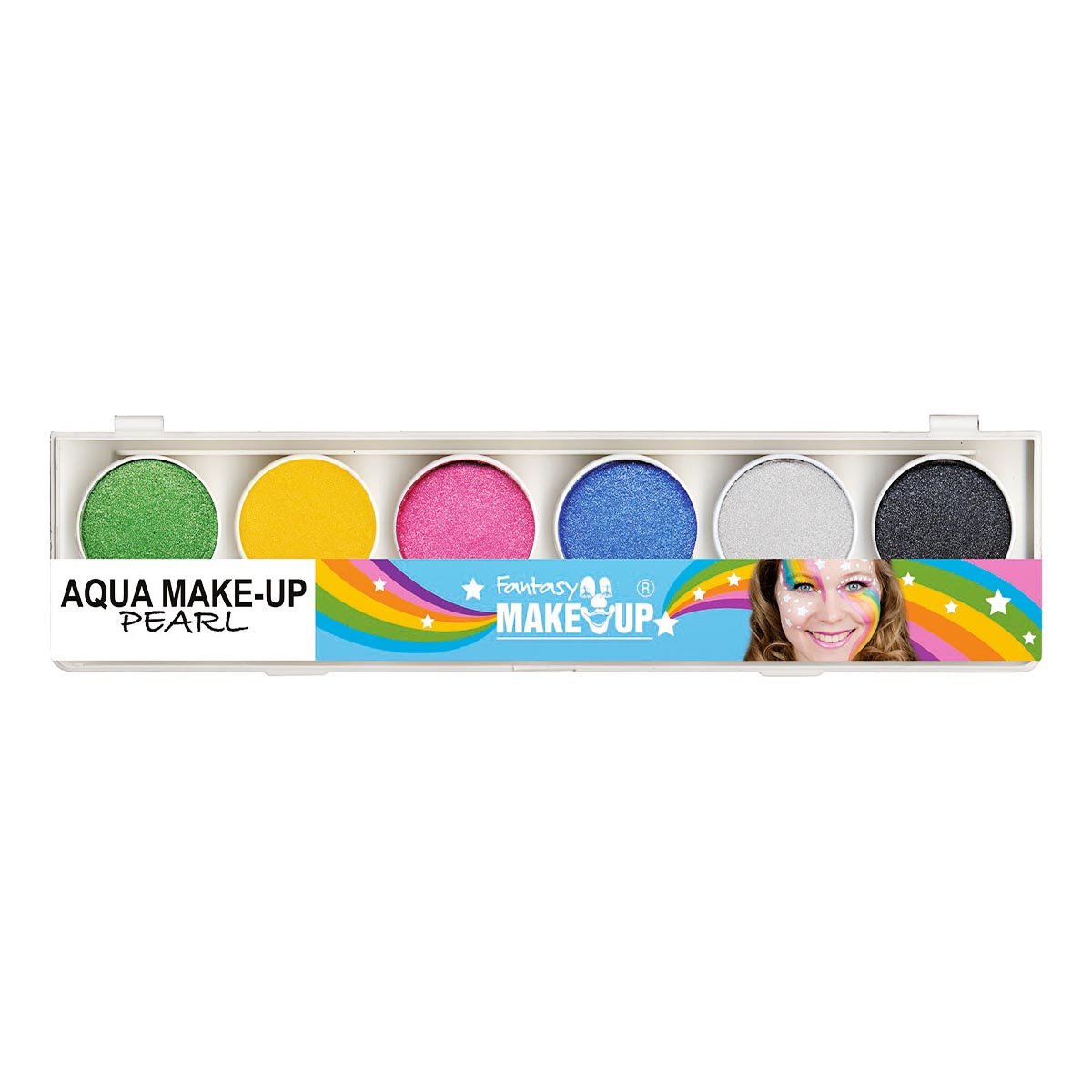Ta din sminkning till nästa nivå med Sminkpalett, 6 färger pearl från Fantasy Make-Up – en glittrande sminkupplevelse för både barn och vuxna. Denna skimrande palett innehåller sex gnistrande färger: grön, gul, rosa, blå, silver och svart – samtliga med pärlemoreffekt som fångar ljuset på ett magiskt sätt.