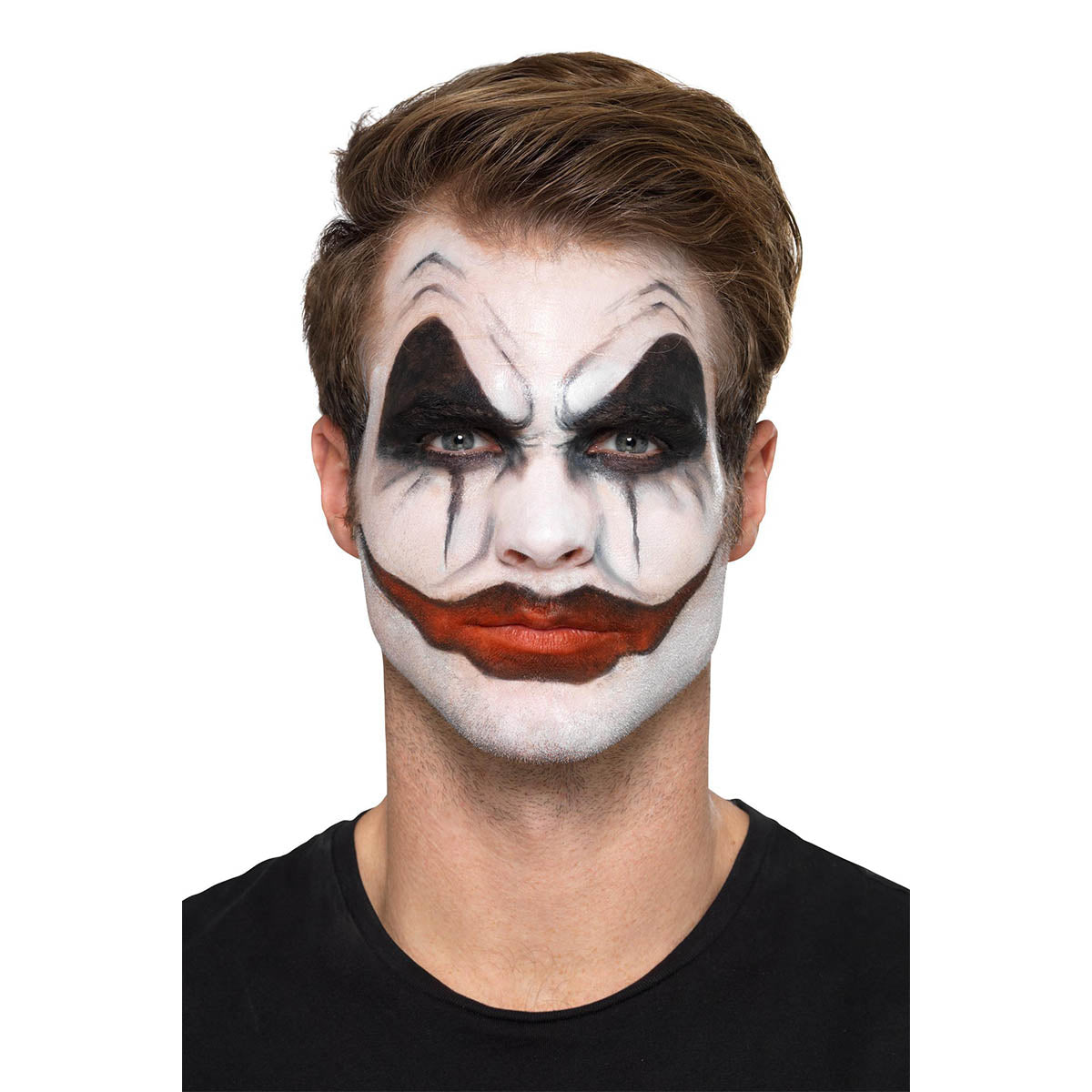 Detta killerclown sminkset passar både vuxna och tonåringar som vill göra ett starkt och skräckinjagande intryck på halloween.
