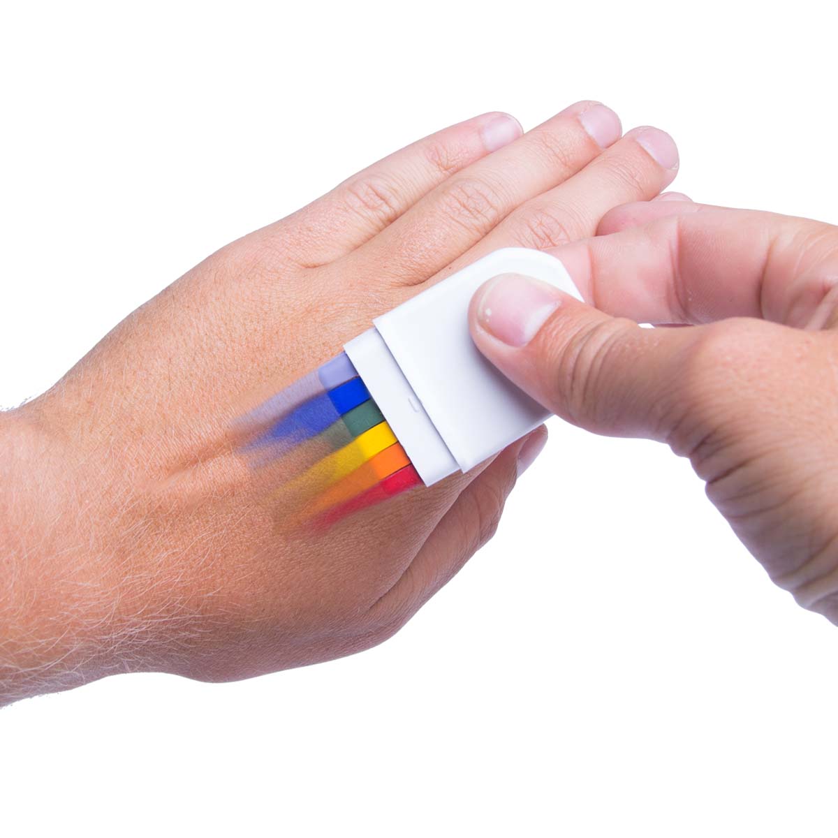 Det oljebaserade sminkstiftet är enkelt att använda genom att bara dra det mot huden. Du kan enkelt skapa regnbågslinjer längs med armar, små flaggor på kinderna, bara fantasin sätter gränserna. Ge utlopp för din kreativitet och visa upp din stolthet med denna mångsidiga produkt.