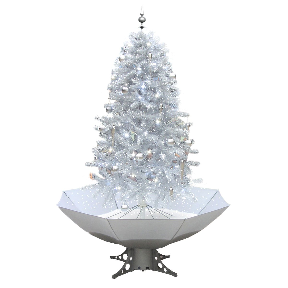 Nu kan du ha en snöande julgran inomhus! Sätt på granen och små vita kulor som likna snö börjar skjuta ut från granens topp och ner, sen går det runt så. En stämningsgivande dekoration kan vi lova. Granen är i verklig storlek, 180 cm hög och ca 125 cm bred.