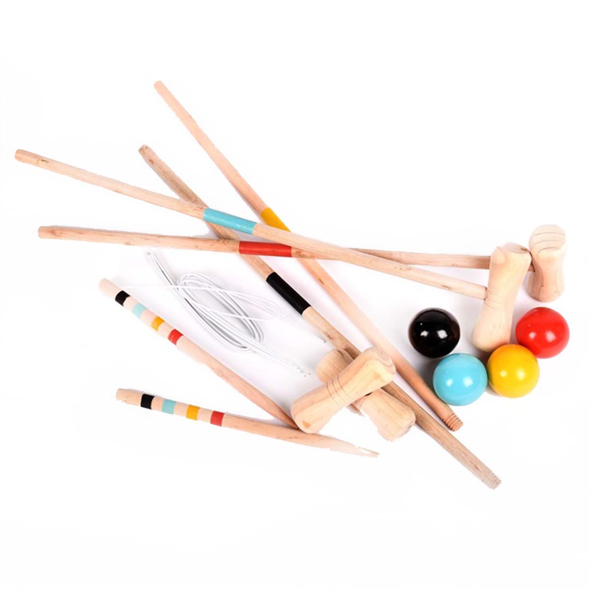 4 färger på krocketbollar.