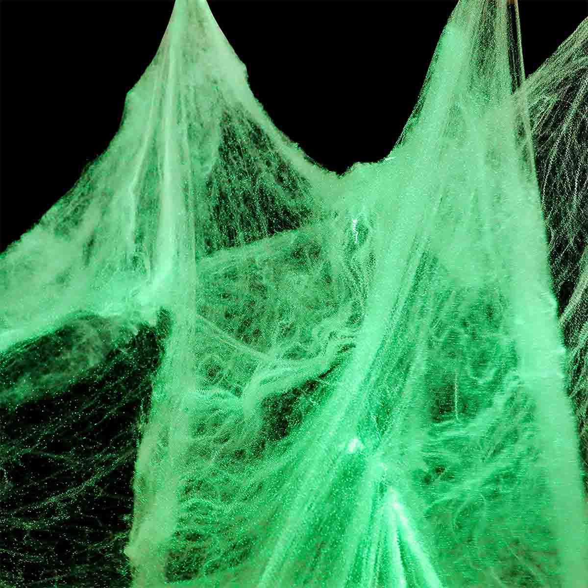 20 g grönt självlysande spindelnät för den lilla halloweendekoren.
