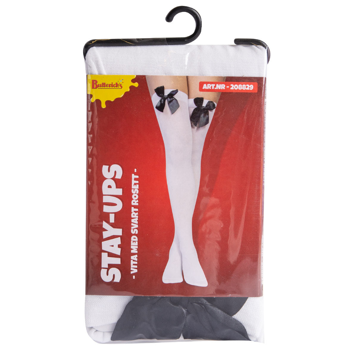 Ta din stil till nya höjder med dessa bedårande vita stay-ups från Butterick's, toppade med stilfulla svarta rosetter. Oavsett om du kompletterar din vardagliga outfit med en lekfull touch eller fulländar din cosplaykreation, erbjuder dessa knästrumpor både komfort och karaktär. Tillverkade i ett skönt stretchmaterial, garanterar de att strumporna sitter uppe utan att glida ned, vilket gör dem till ett bekvämt val från morgon till kväll.