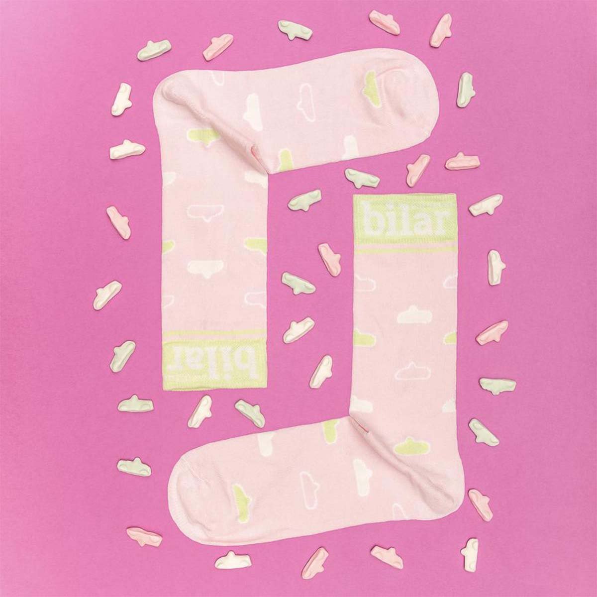 Ahlgrens Bilar som du inte ska stoppa i munnen! Dessa snygga strumporna från Cloetta är de snyggaste strumporna du kan ha när du älskar deras klassiska Ahlgrens Bilar från 1953! Sveriges mest köpta bil blev till efter att Ahlgren försökte göra marsmellows men resultatet blev bättre än vad man kunde tro! Rocka dessa snygga strumpor på klassfesten eller ge bort till dina godisälskande vänner.