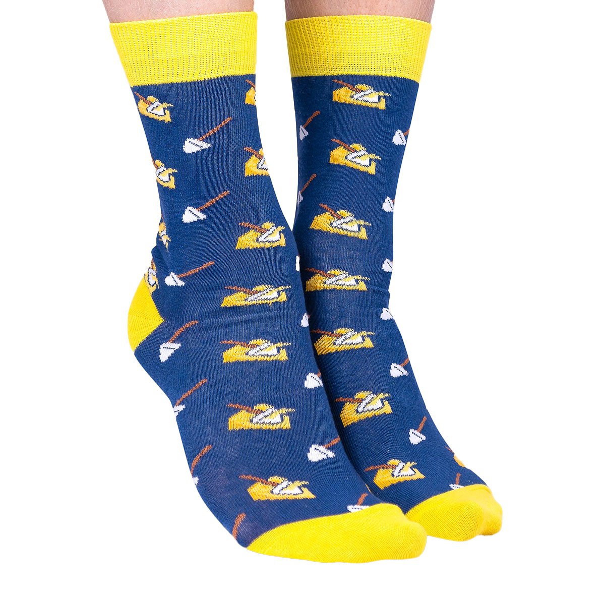 Ge dina fötter en dos av svensk humor med dessa lekfulla strumpor prydda med ostar och osthyvlar! Perfekta för den som älskar svensk matkultur och vill visa sin stolthet på ett roligt sätt. Strumporna är inte bara en kul accessoar utan också mjuka och bekväma – perfekta för att hålla fötterna glada hela dagen. Med en skarp blå färg och kontrasterande gula detaljer kommer dessa strumpor definitivt att dra blickarna till sig. De finns i två storlekar, 36/40 och 41/46, vilket gör dem till en perfekt present till både dig själv och andra ostälskare! Vare sig du ska på en temafest, vill sprida svensk charm utomlands, eller bara liva upp vardagsoutfiten, så är dessa strumpor ett självklart val.