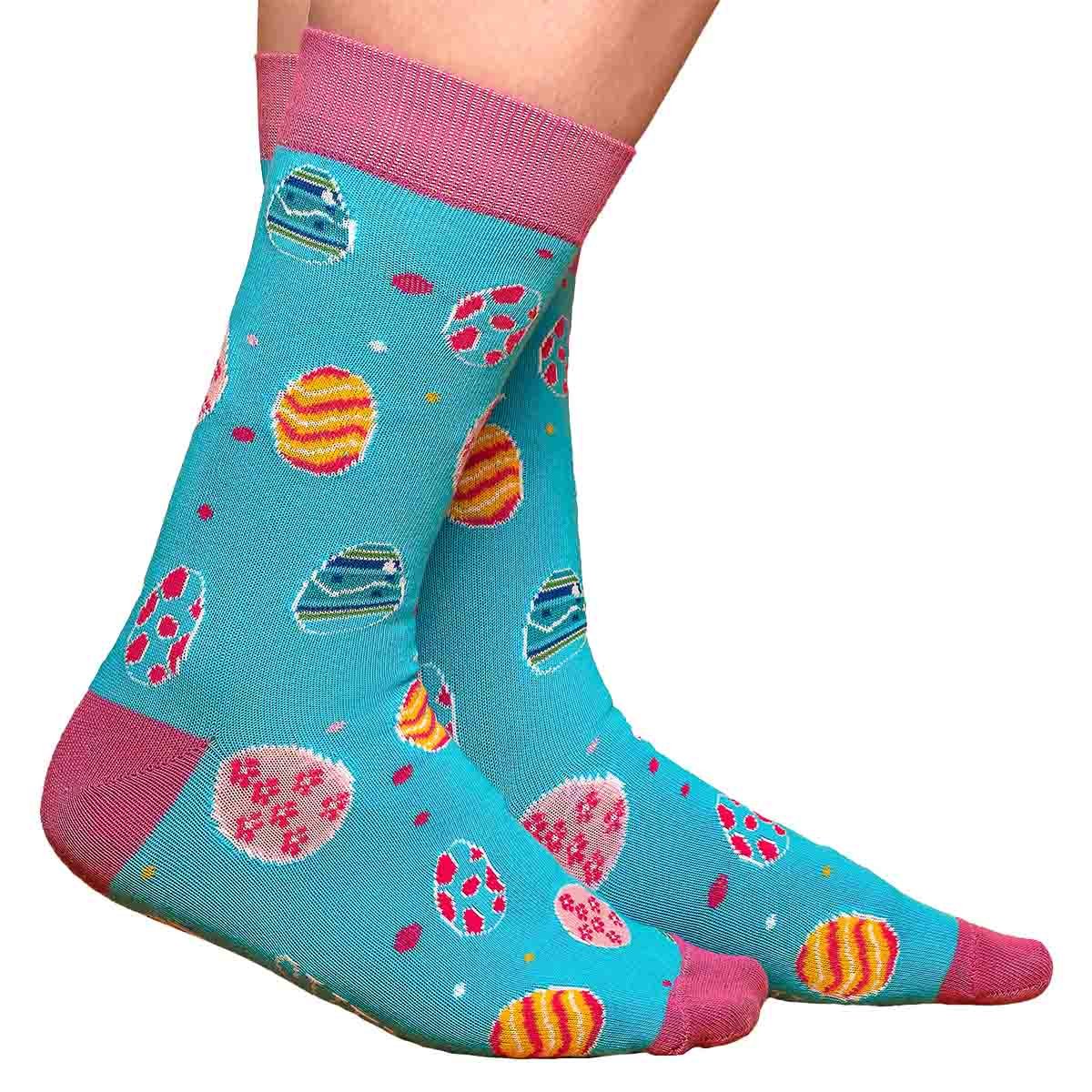 Ljusblå strumpor med påskägg passar perfekt till påsken och du kan gå hela påskhelgen i dessa härliga strumporna. Göm ett par strumpor i påskäggen eller ge som påskpresent till dina släktningar. Alla älskar dessa påskstrumpor.
