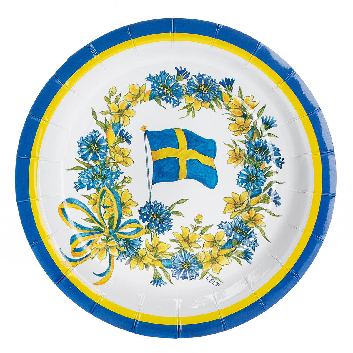 Gör festen lite mer blågul med dessa papperstallrikar dekorerade med den svenska flaggan och vackra sommarblommor. Perfekta för nationaldagen, midsommar, studenten eller varför inte en hejdundrande grillfest i trädgården.