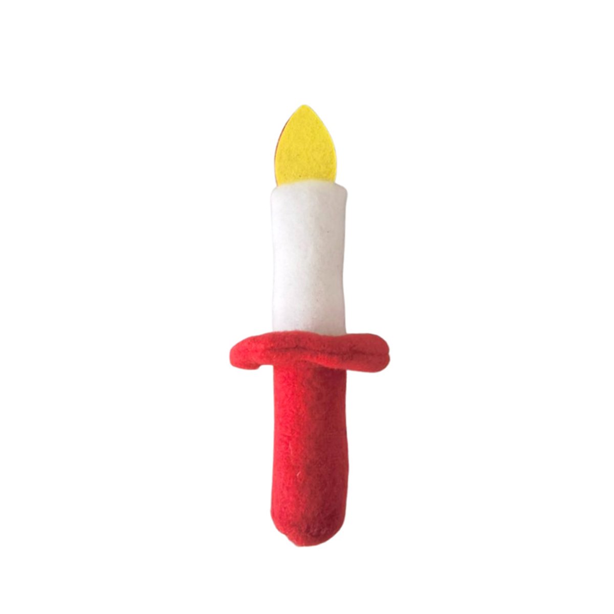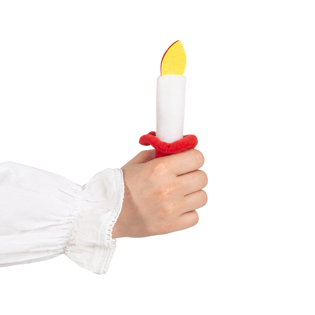 Komplettera tärnans look med detta charmiga tärnljus i mjukt tyg! Ljuset är en säker och rolig accessoar för både barn och vuxna som deltar i luciatåg. Med sitt realistiska utseende, vita kropp och röd ljushållare passar det perfekt i handen och bidrar till en stämningsfull helhet. Den gula tyglågan ger en illusion av ett brinnande ljus utan några risker.