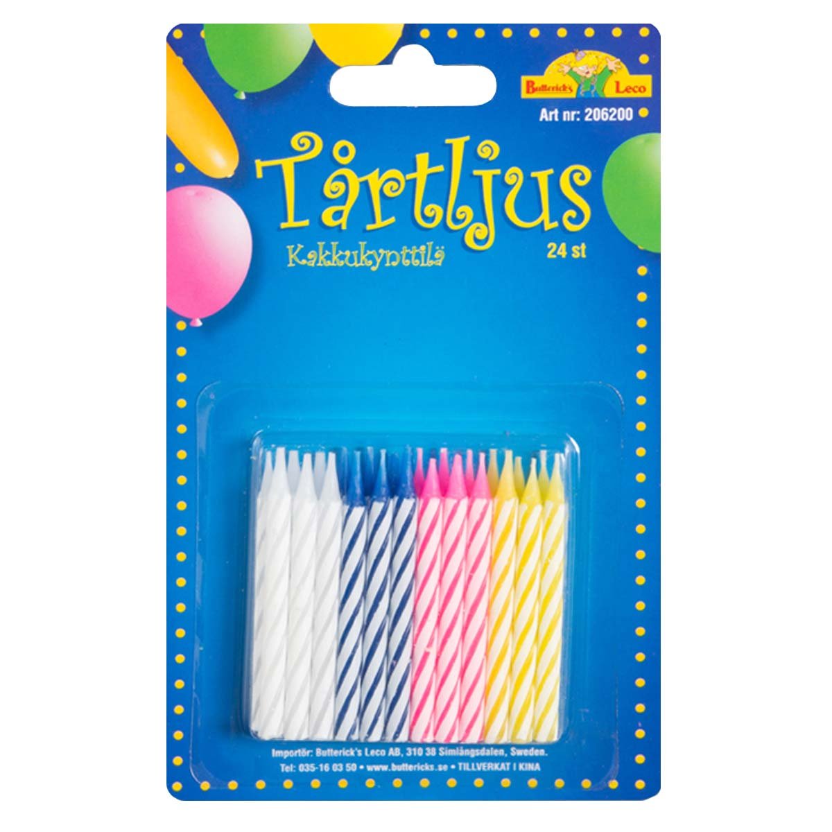 Hurra, hurra, hurra! Oavsett vad man har att fira så finns det inget som slår en tårta med tårtljus. I detta klassiska tårtljus-set får man 24 stycken 6 centimenter långa ljus att pryda tårtan med.
