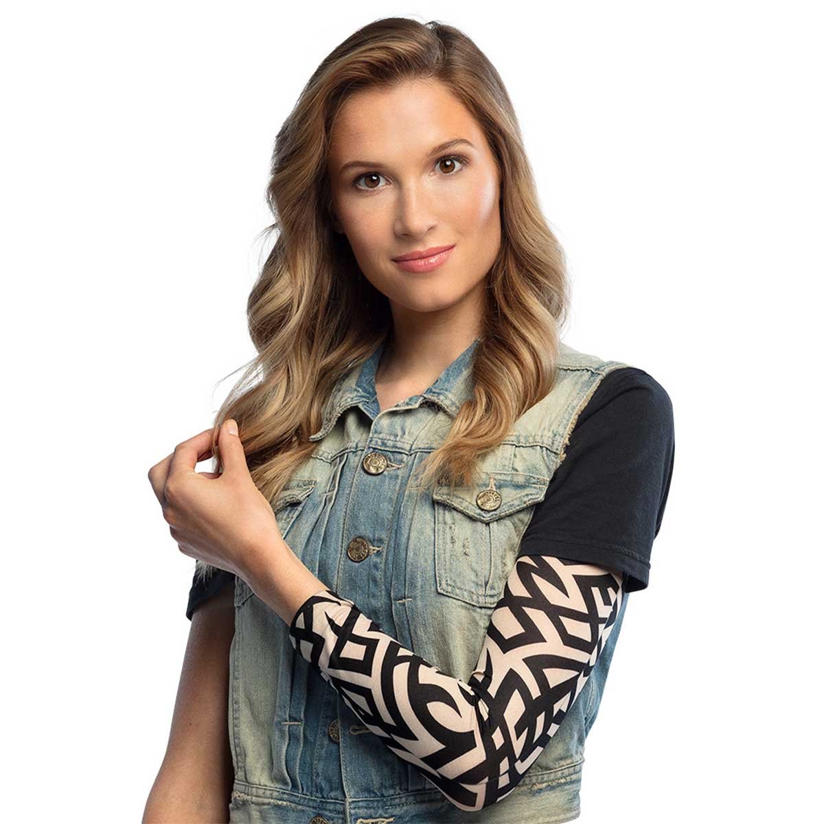 Med denna tribal sleeve tatueringstrumpa kan du omedelbart förvandla ditt utseende och ge sken av att du har en helarmstatuering. Denna stretchiga, hudliknande strumpan är designad för att enkelt dras på armen och sitter bekvämt och säkert hela dagen eller kvällen.